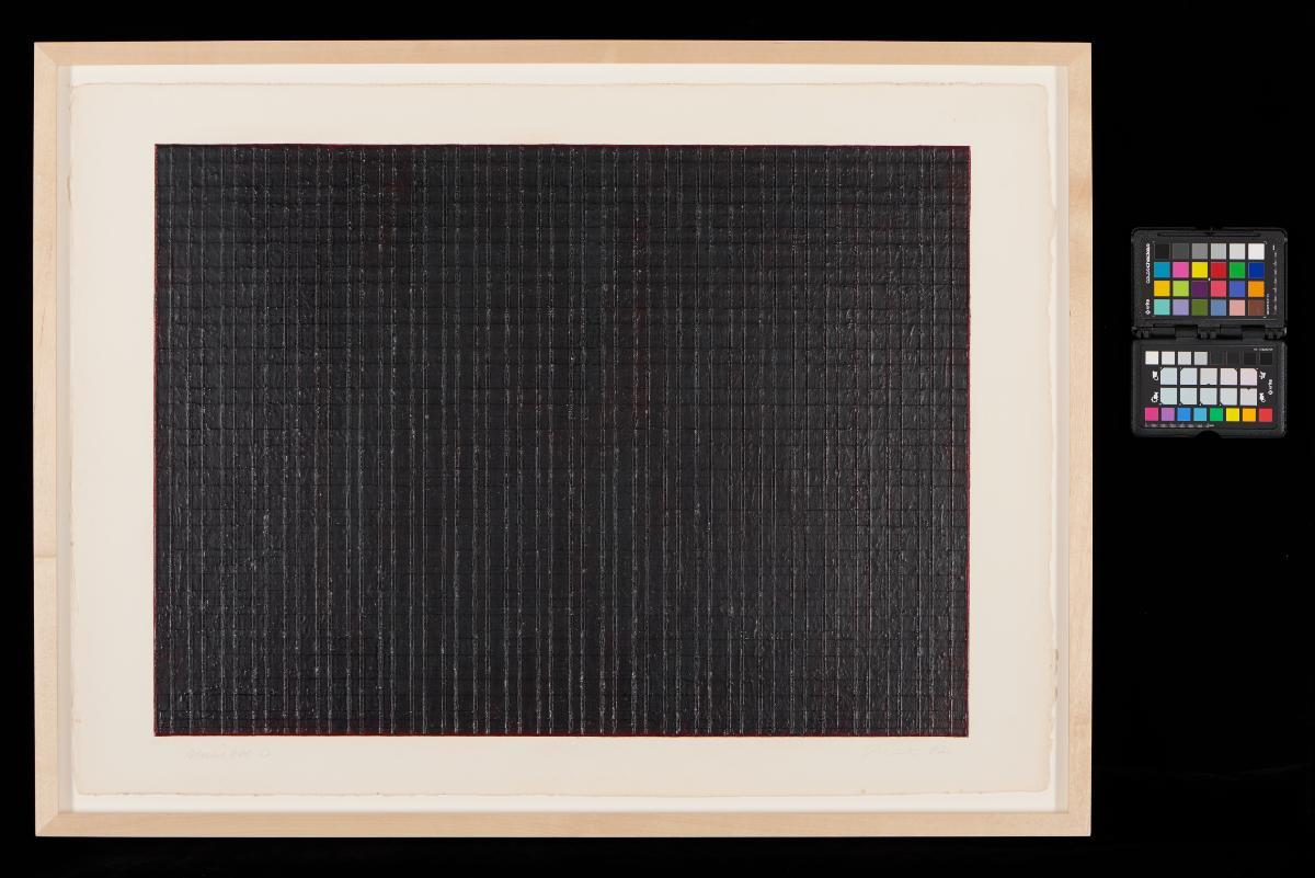 Mak Kum Siew’s artistic practice represents those from the second generation of Singapore artists trained overseas in Europe and America, with peers including Thomas Yeo, Choy Weng Yang, Teo Eng Seng, Ng Eng Teng, Tan Teo Kwang, Wong Keen and Goh Beng Kwan. A striking difference between Mak and his peers was his early success in London, which led to his decision to remain away from home to live and work in U.K. as a professional artist. Born in 1940 when Singapore was still a British colony, Mak grew up amidst the bustling Joo Chiat district, where his parents ran a laundry business that serviced the British, which later changed to an izakaya (Japanese-style pub) during the Japanese Occupation. Being the youngest of nine siblings, Mak first studied in Yangzheng Primary 养正小学 before enrolling to Chinese High School 华侨中学. While the former allowed Mak to cultivate grounds in Chinese calligraphy, it was at the latter that his budding art practice and passion shone. His talent was spotted by Tay Ann Long, Chen Wen Hsi and Cheong Soo Pieng. Amongst his peers, Mak was known as Cheong’s favourite pupil, as he was given private lessons afterschool at NAFA, and both went to London together in 1961 for their individual pursuit of artistic excellence.In London, Mak Kum Siew first studied at Central Saint Martin's School of Art (1961-1964), followed by gaining acceptance to the Painting programme at the Royal College of Art (1964-1967) through the open-application channel. Here, he formed a lasting relation with teacher Peter de Francia (1921 – 2012), who became a confidant to Mak. London was also where Mak became acquainted with Fang Shaoling 方召麐 (1914 – 2006). The two was introduced by Cheong Soo Pieng in the early 1960s and quickly formed a relationship akin to familial members. Mak exhibited widely in U.K. with solo exhibitions at Arnolfini (1967), RCA London (1969), Commonwealth Institute (1970); and in group exhibitions at Whitechapel (1964), ICA London (1967), Royal Academy of Arts' Summer Show (1968-1981), National Portrait Gallery (2000), to highlight a few. Between 1968 and 1988, Mak took up teaching positions at a number of art colleges and schools in England and Wales as well.With a firm grounding in art established in Singapore, and a blossoming phase in U.K., Mak reached a critical point at the end of the 1980s. He found himself tired of the seemingly repetitive art making process of his well-received abstraction pieces, and overtly occupied with his responsibilities in the art schools. This artwork belongs to the last series of works by Mak that captures his fixation and experimentation with the basic formality of abstract art, deduced to lines and colours. For Mak, as he shared during the interview / studio visit in February 2017, he wanted to see how far or how much he could alter one’s optical perspective on these 2-dimensional paintings by varying their tone, colour, and undulation, through everyday ordinary materials.