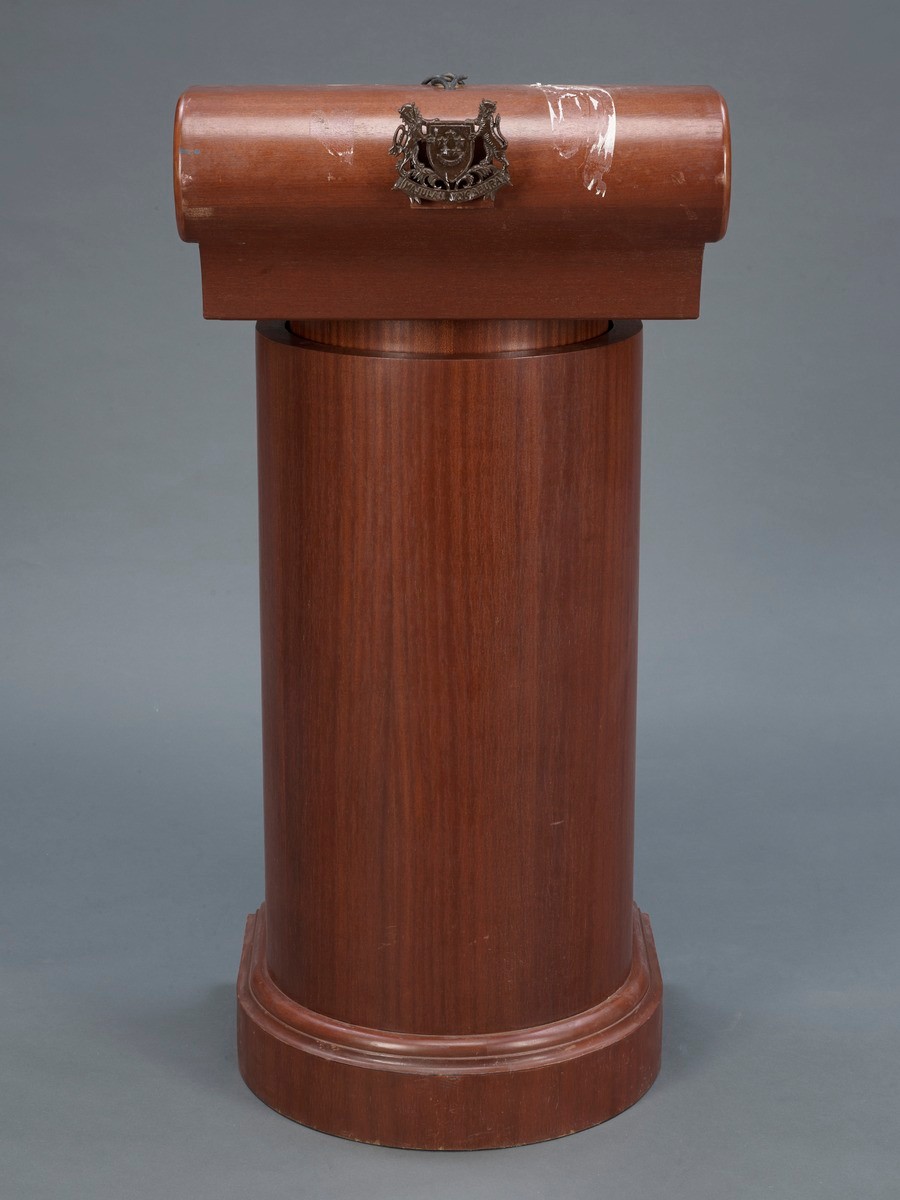 This tabletop lectern was used by Mr Lee Kuan Yew in his capacity as Prime Minister, Senior Minister. It was used by Mr Lee when he delivered speeches to students at the National University of Singapore and Nanyang Technological University in the 1990s.
