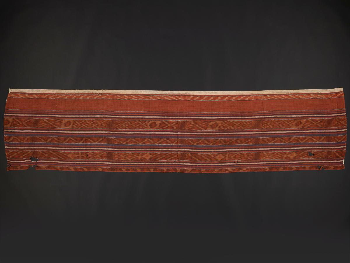 Section of loosely woven warp ikat cloth known in Java as kain gubah or kain kasang. These are described in period records as being used as decorative hangings, curtains or partition cloth for ceremonial or festive occasions.