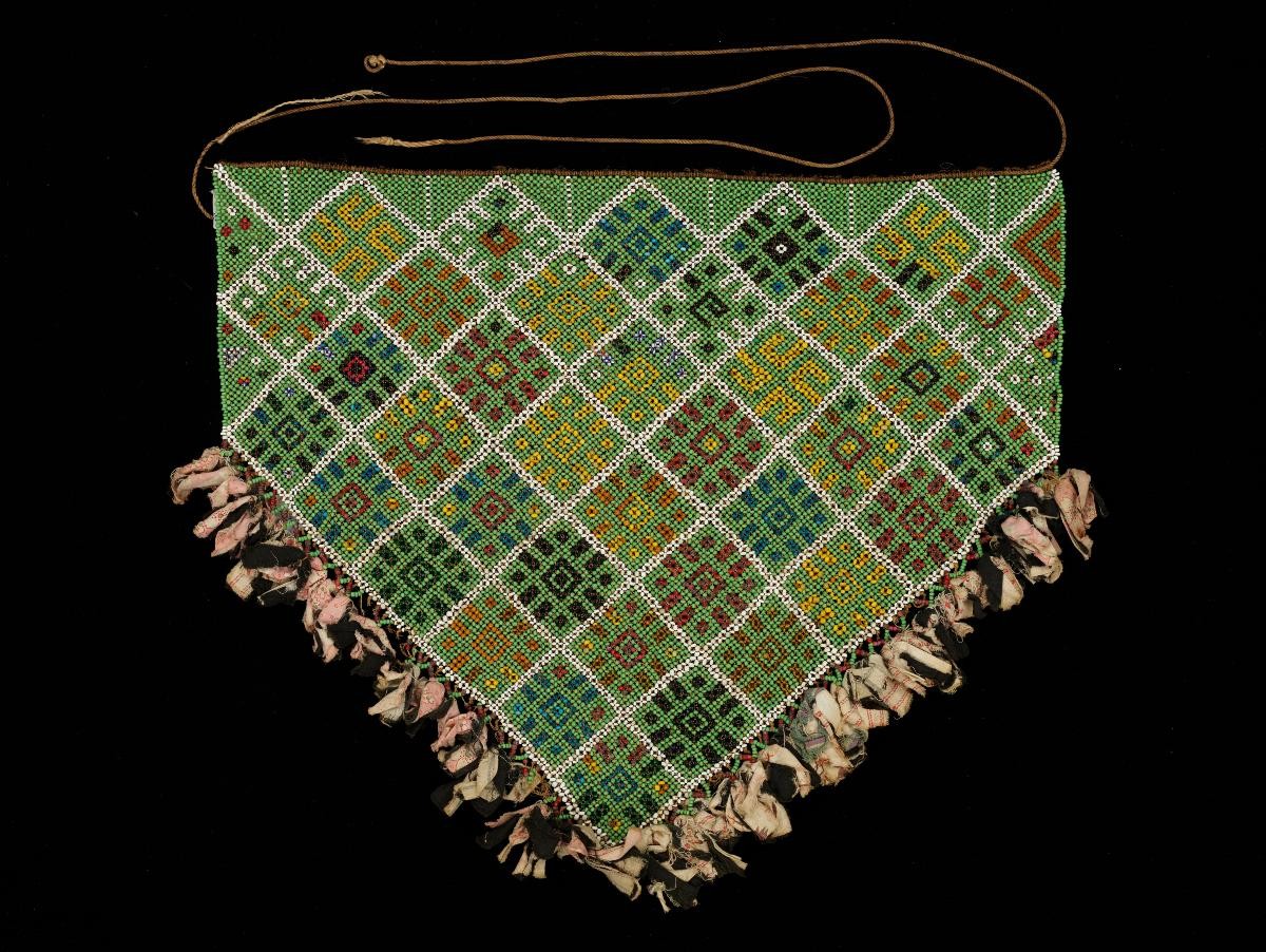 This dance apron from Cenderawasih Bay in West Papua was painstakingly fashioned from imported glass beads. These would have been obtained by traders based on the island of Biak, an entrepot trading centre frequented by Moluccan, Bugis and even Chinese traders. Aside from being a part of festive attire, such valuable beaded items would also make up an important part of a dowry.