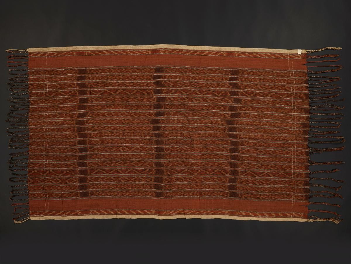 Section of loosely woven warp ikat cloth known in Java as kain gubah or kain kasang. These are described in period records as being used as decorative hangings, curtains or partition cloth for ceremonial or festive occasions. See Maxwell (2003, p. 224) for a similar example. There is scant information on these textiles in the literature, in part because it was probably considered inferior and "commercial". Jasper and Pirngadie discuss these cloths briefly in Vol. 1 of their "De Inlandsche Kunstnijverheid in Nederlandsch Indie".