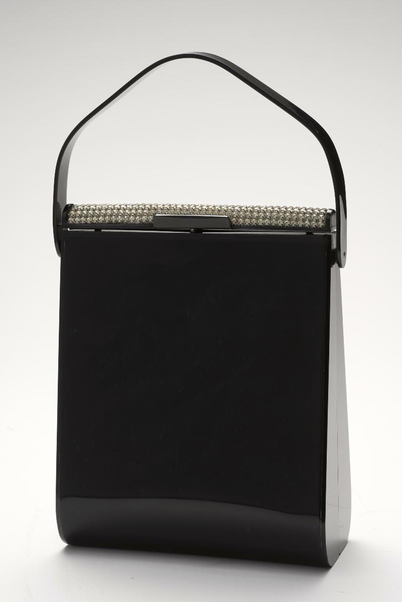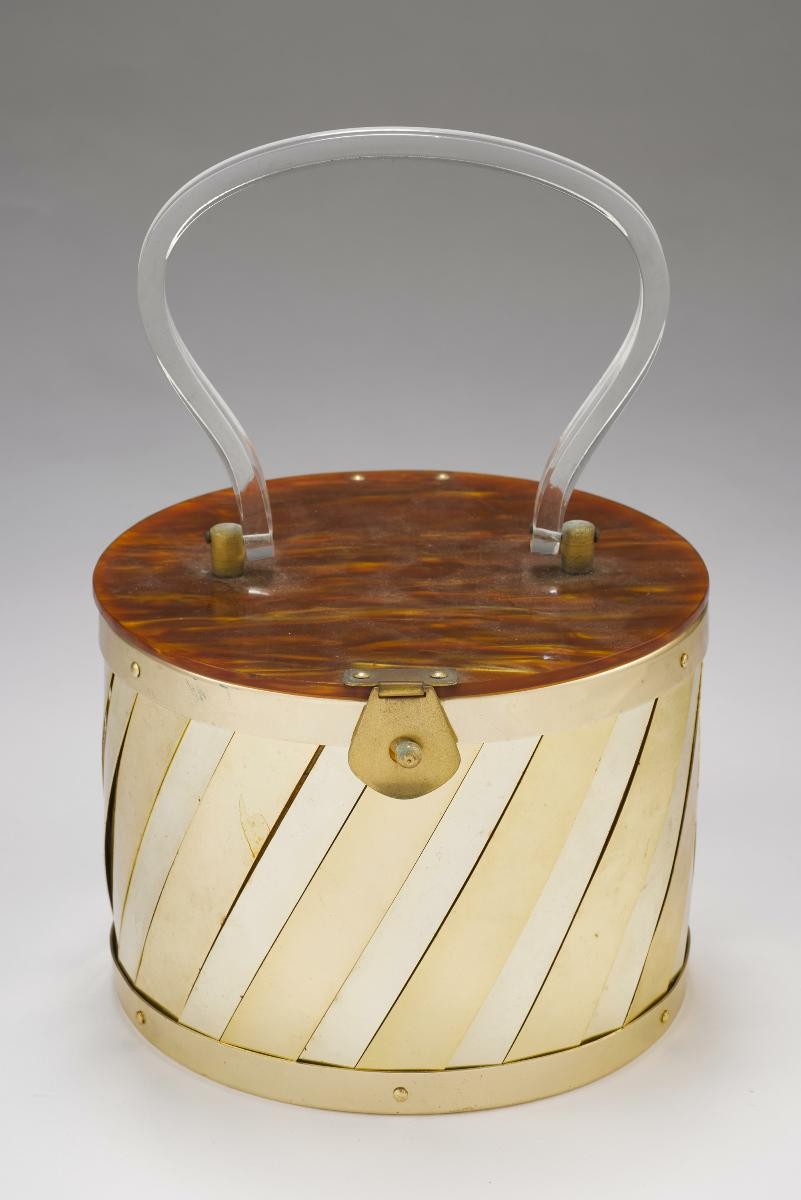 This crescent-shaped acrylic evening bag with metal work decorations belonged to Mdm Tong Swee Ying, who was the wife of a banker, Mr Kwok Chan Kwan. Mrs Kwok often attended business and social parties with her husband in the 1950s and 60s. Mr Kwok worked in Batavia before the war and while he was interned as a prisoner of war (POW) during the Japanese occupation, Mrs Kwok evacuated with their children to Singapore. The family was reunited later and resettled down in Singapore after 1952.