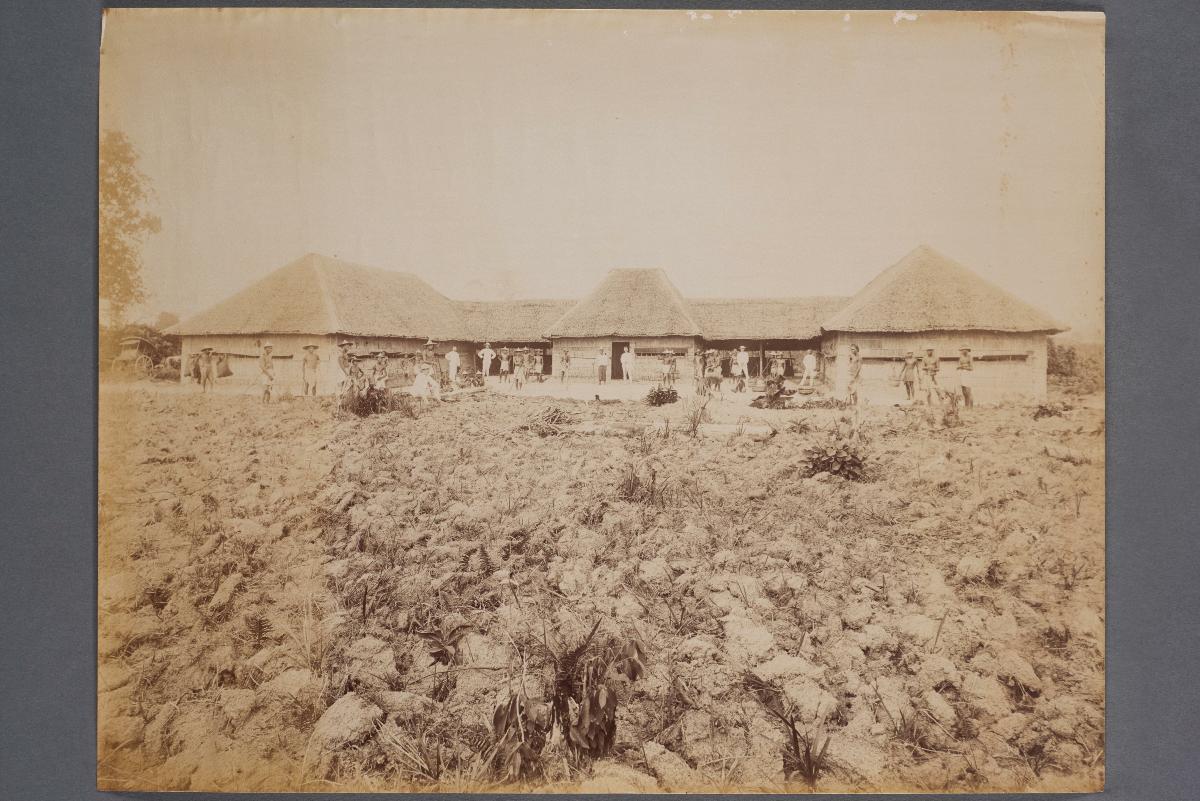 This photograph is part of a collection titled Souvenir de Deli, comprising the works of C. J. Kleingrothe, a photographer based in Sumatra in the late 19th and early 20th century. This image depicts the administrative house of the Sibarau tobacco estate near Deli.