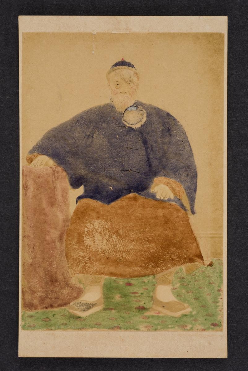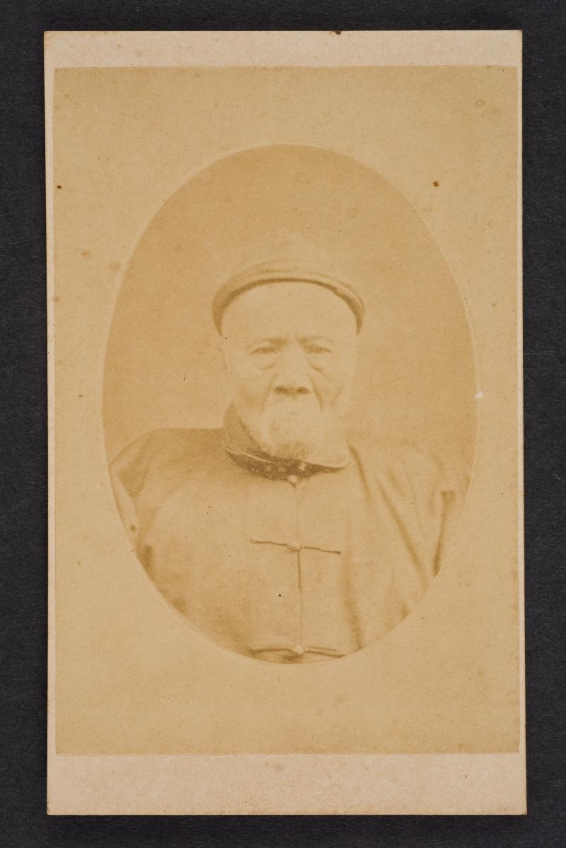 This album leaf contains five photographs, including one from around 1905 of Peranakan businessman and philanthropist Cheang Hong Lim, dressed in the robes of a Qing Chinese official. The photograph on the verso shows a view of the Buddhist temple of Borobudur in Central Java, Indonesia. ‘Gallery View Boeroe Boeder by Neeijela’ is inscribed on the lower edge of the leaf. These photographs were probably taken by G.R. Lambert and Co.G.R. Lambert and Co was a leading and the most enduring of the European photography studios in Singapore. The studio was established in 1867 by Gustave Richard Lambert, who was originally from Dresden, Germany. Popular among the elites, the firm was often chosen as the official photographers for important state events in Singapore. In 1861 it was appointed as the official photographer of the King of Siam and the Sultan of Johore.