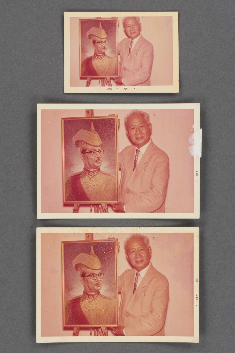 These three portraits show Low Kway Song wearing a beret. Low Kway Song (1889-1982) was a pioneering artist who painted portraits of many prominent personalities in Singapore and Malaysia. He became the first artist to be paid a four-figure fee when he was commissioned to paint a portrait of the magnate Oei Tiong Ham in 1927. Low Kway Song established the first Straits Chinese Methodist Church in Malacca and in 1940 he became the Pastor of the Malacca Straits Chinese Methodist Church, where services were conducted in Baba Malay. Part of an archive which provides a record and glimpse into his personal life and artistic practice, this came from a collection which belonged to Low Kway Song.