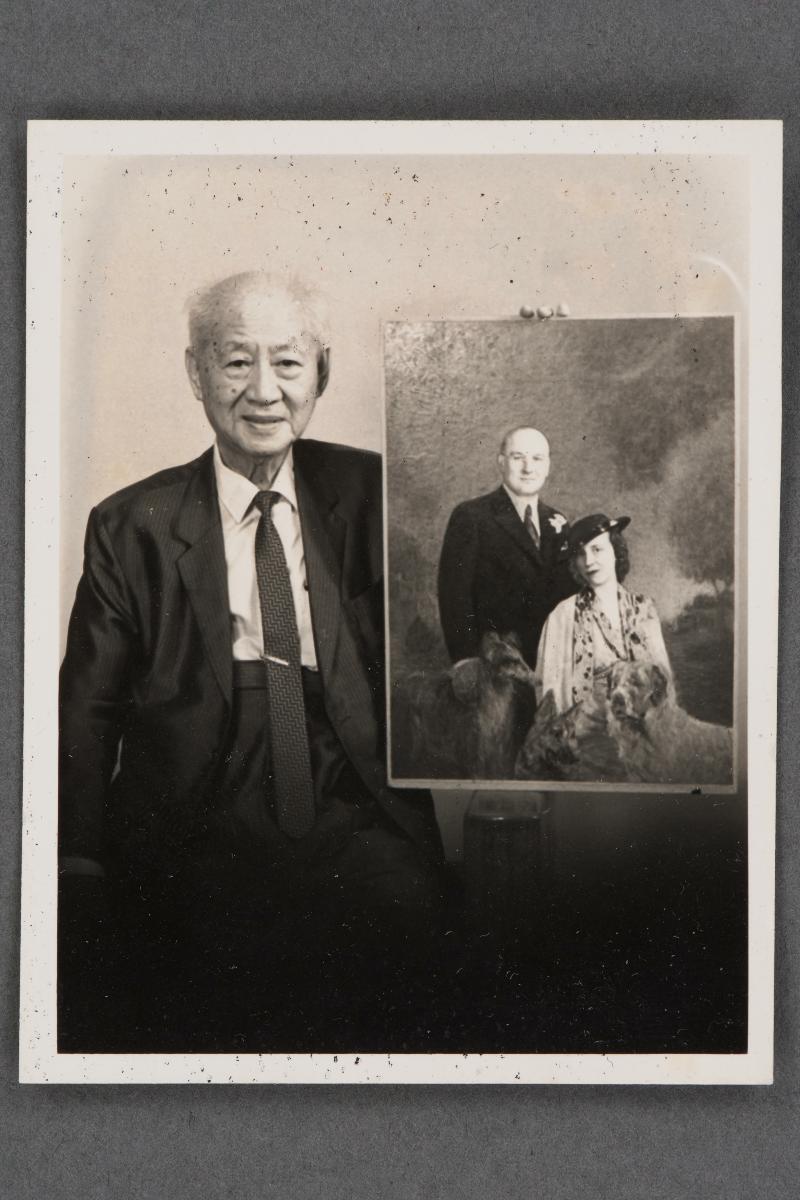 This photograph shows Low Kway Song and his hand on the framed portrait of G.E.C. Wisdom, Resident Commissioner of Malacca. Low Kway Song (1889-1982) was a pioneering artist who painted portraits of many prominent personalities in Singapore and Malaysia. He became the first artist to be paid a four-figure fee when he was commissioned to paint a portrait of the magnate Oei Tiong Ham in 1927. Low Kway Song established the first Straits Chinese Methodist Church in Malacca and in 1940 he became the Pastor of the Malacca Straits Chinese Methodist Church, where services were conducted in Baba Malay. Part of an archive which provides a record and glimpse into his personal life and artistic practice, this came from a collection which belonged to Low Kway Song.