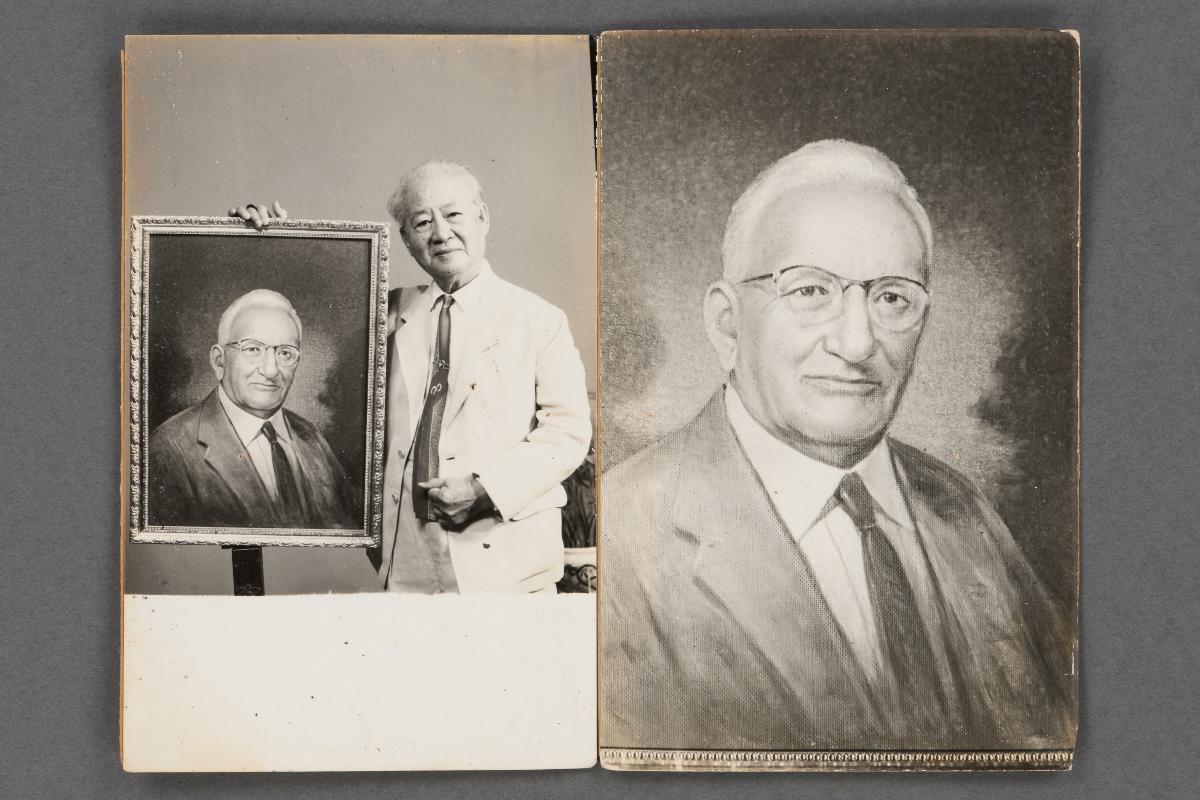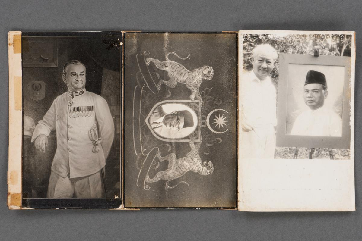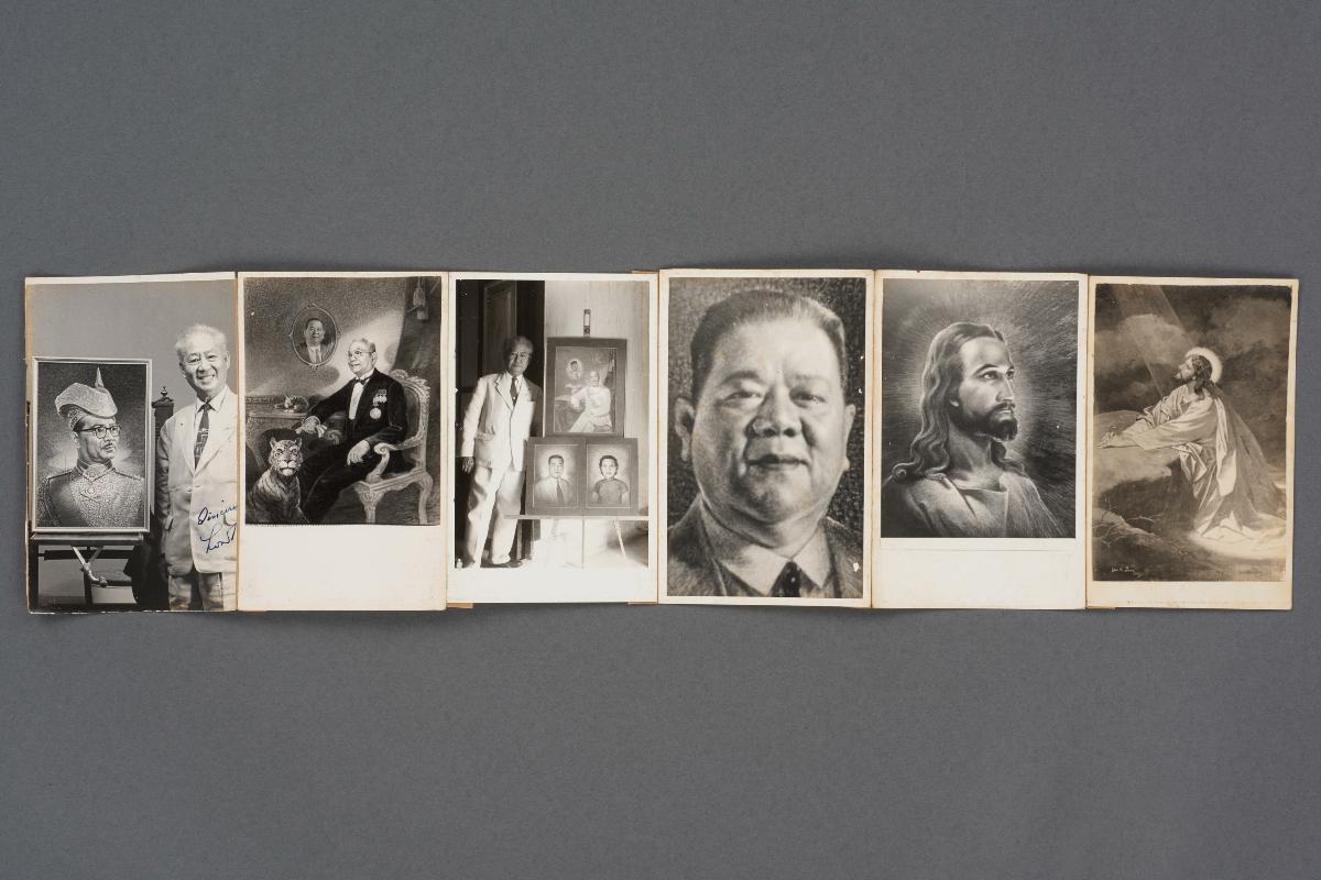 This photograph shows Low Kway Song dressed in a shirt and sarong posing with some of his paintings. ‘May 72’ is printed along the lower edge. Low Kway Song (1889-1982) was a pioneering artist who painted portraits of many prominent personalities in Singapore and Malaysia. He became the first artist to be paid a four-figure fee when he was commissioned to paint a portrait of the magnate Oei Tiong Ham in 1927. Low Kway Song established the first Straits Chinese Methodist Church in Malacca and in 1940 he became the Pastor of the Malacca Straits Chinese Methodist Church, where services were conducted in Baba Malay. Part of an archive which provides a record and glimpse into his personal life and artistic practice, this came from a collection which belonged to Low Kway Song.