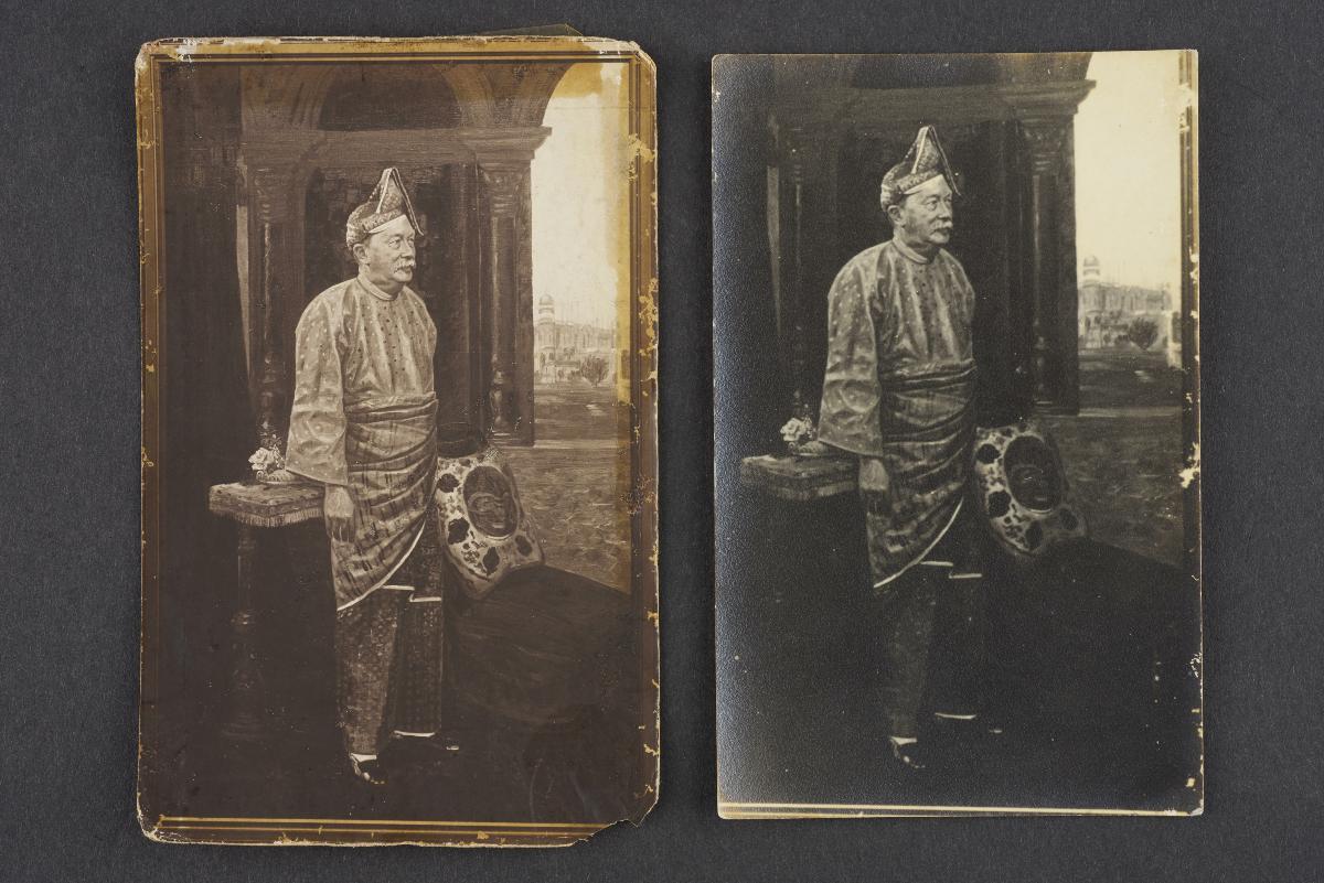 This photograph shows Low Kway Song’s painting entitled ‘A Sultan in his Palace’. Low Kway Song (1889-1982) was a pioneering artist who painted portraits of many prominent personalities in Singapore and Malaysia. He became the first artist to be paid a four-figure fee when he was commissioned to paint a portrait of the magnate Oei Tiong Ham in 1927. Low Kway Song established the first Straits Chinese Methodist Church in Malacca and in 1940 he became the Pastor of the Malacca Straits Chinese Methodist Church, where services were conducted in Baba Malay. Part of an archive which provides a record and glimpse into his personal life and artistic practice, this came from a collection which belonged to Low Kway Song.