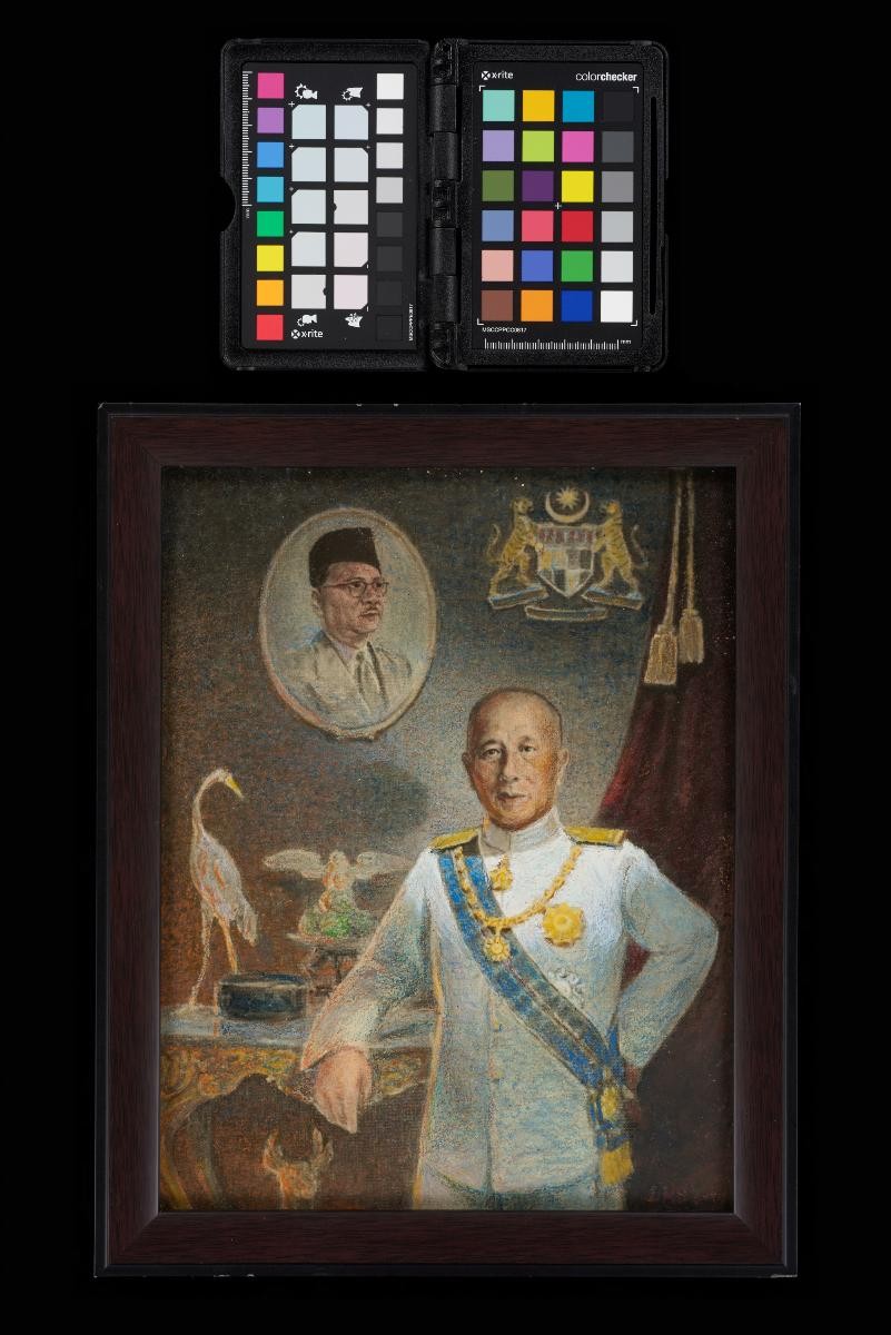 This photograph shows Low Kway Song’s portrait of Tan Cheng Lock (1883-1960), Malayan statesman and founder of the Malayan Chinese Association in 1948.Low Kway Song (1889-1982) was a pioneering artist who painted portraits of many prominent personalities in Singapore and Malaysia. He became the first artist to be paid a four-figure fee when he was commissioned to paint a portrait of the magnate Oei Tiong Ham in 1927. Low Kway Song established the first Straits Chinese Methodist Church in Malacca and in 1940 he became the Pastor of the Malacca Straits Chinese Methodist Church, where services were conducted in Baba Malay. Part of an archive which provides a record and glimpse into his personal life and artistic practice, this came from a collection which belonged to Low Kway Song.