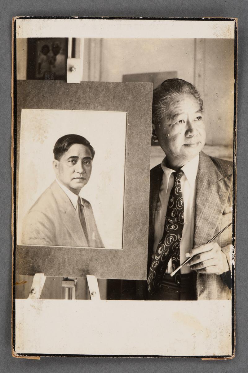 This photograph shows a painting of Aw Boon Haw (1882-1954), the famous businessman who established the herbal medication company Tiger Balm. Low Kway Song (1889-1982) was a pioneering artist who painted portraits of many prominent personalities in Singapore and Malaysia. He became the first artist to be paid a four-figure fee when he was commissioned to paint a portrait of the magnate Oei Tiong Ham in 1927. Low Kway Song established the first Straits Chinese Methodist Church in Malacca and in 1940 he became the Pastor of the Malacca Straits Chinese Methodist Church, where services were conducted in Baba Malay. Part of an archive which provides a record and glimpse into his personal life and artistic practice, this came from a collection which belonged to Low Kway Song.