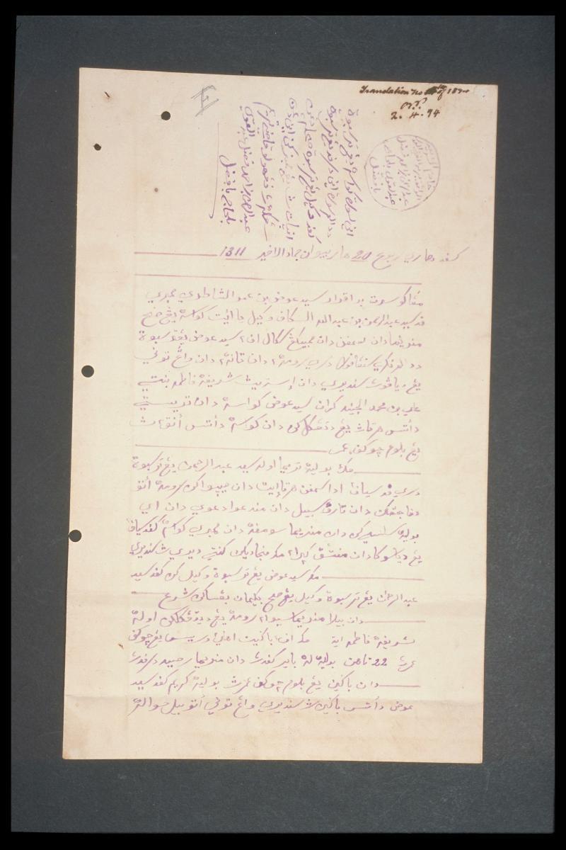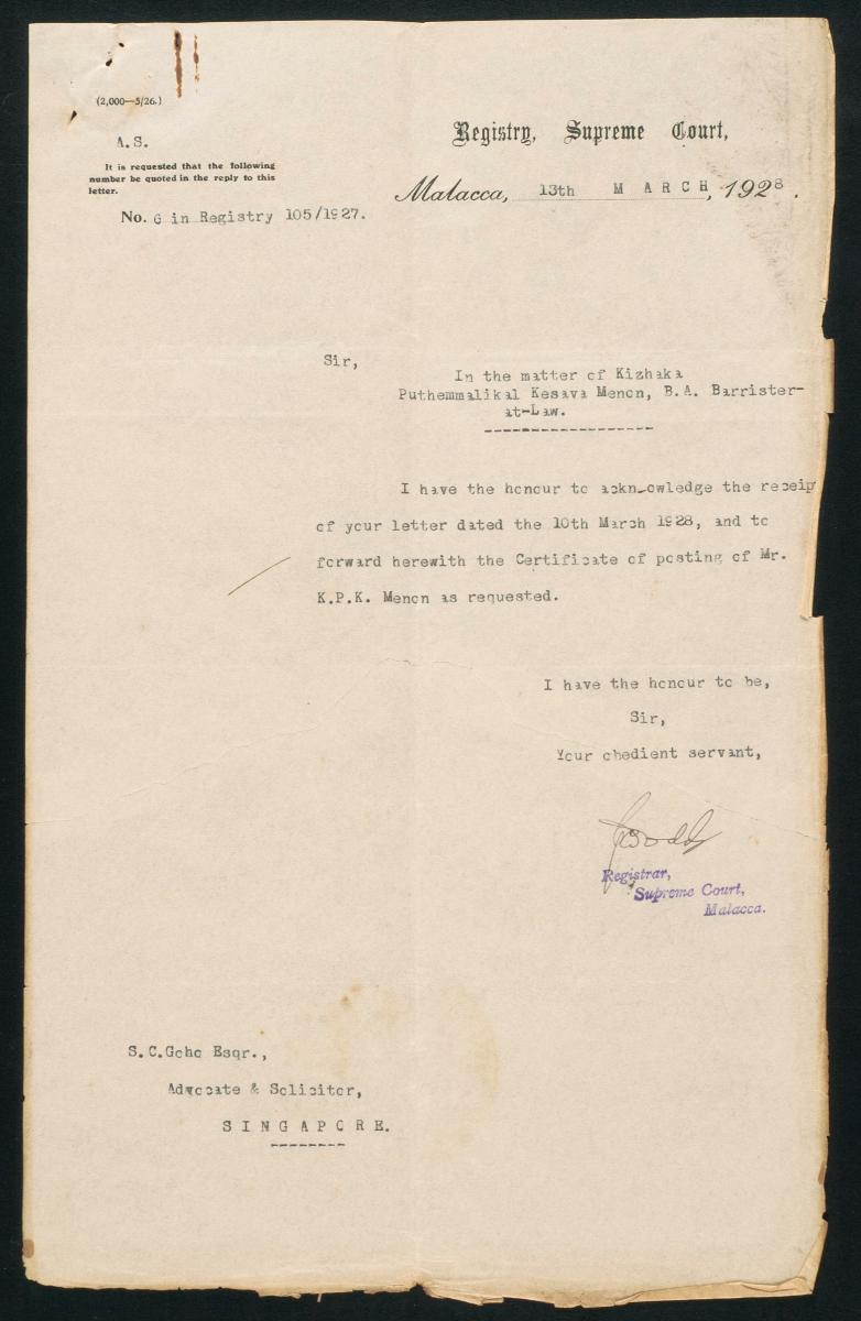 This photograph shows a letter from the Retired Governor of Malacca, Abdul Malik bin YusofLow Kway Song (1889-1982) was a pioneering artist who painted portraits of many prominent personalities in Singapore and Malaysia. He became the first artist to be paid a four-figure fee when he was commissioned to paint a portrait of the magnate Oei Tiong Ham in 1927. Low Kway Song established the first Straits Chinese Methodist Church in Malacca and in 1940 he became the Pastor of the Malacca Straits Chinese Methodist Church, where services were conducted in Baba Malay. Part of an archive which provides a record and glimpse into his personal life and artistic practice, this came from a collection which belonged to Low Kway Song.