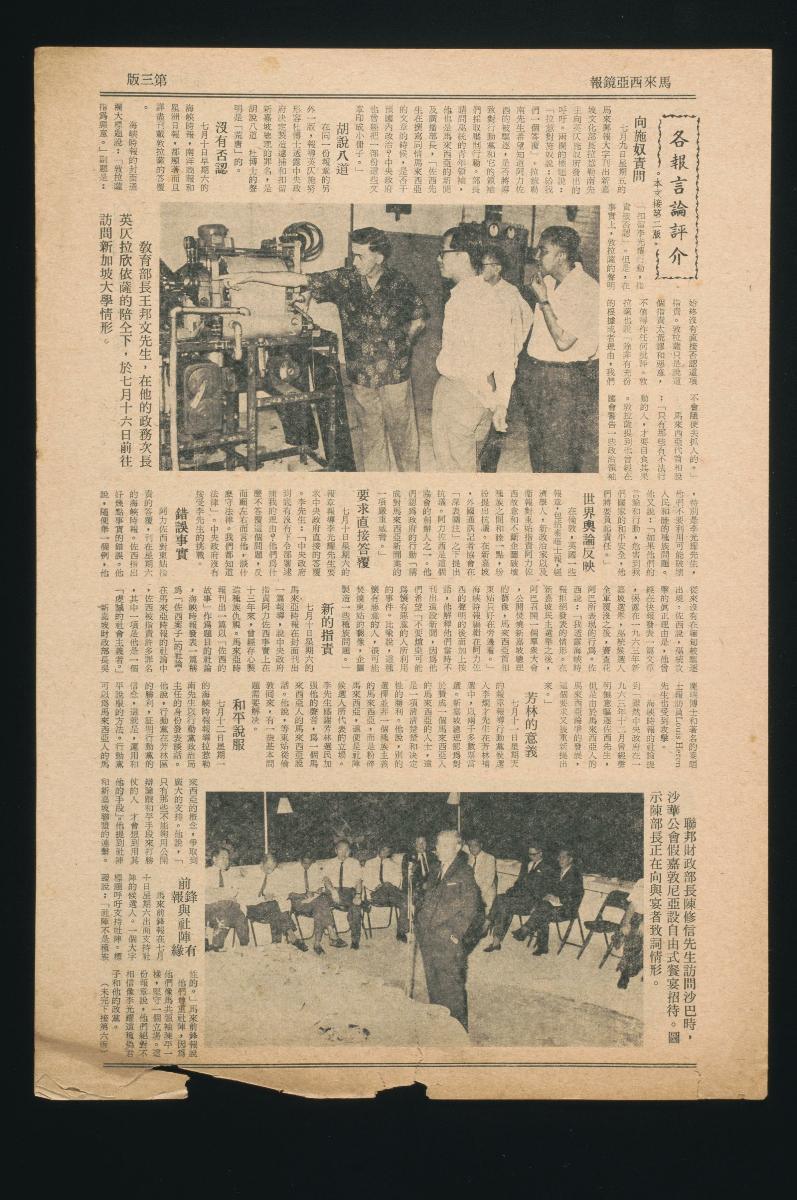 The Malaysian Mirror, published by Singapore's Ministry of Culture, was a weekly current affairs newsletter that contained news articles from both Malaysian and foreign sources such as The Economist, The Bangkok Post and Sydney Morning Herald. The Malaysian Mirror was the predecessor to The Mirror and it was distributed to public organisations for free.