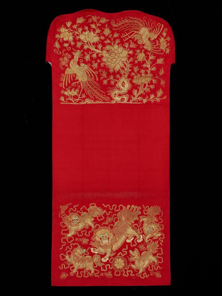 This pair of wedding chairs are high-backed and minimally decorated. Embroidered chair covers are placed over the chairs when they are used in pairs during ceremonial occassions such as weddings and placed next to altars and wedding beds in the Peranakan home.