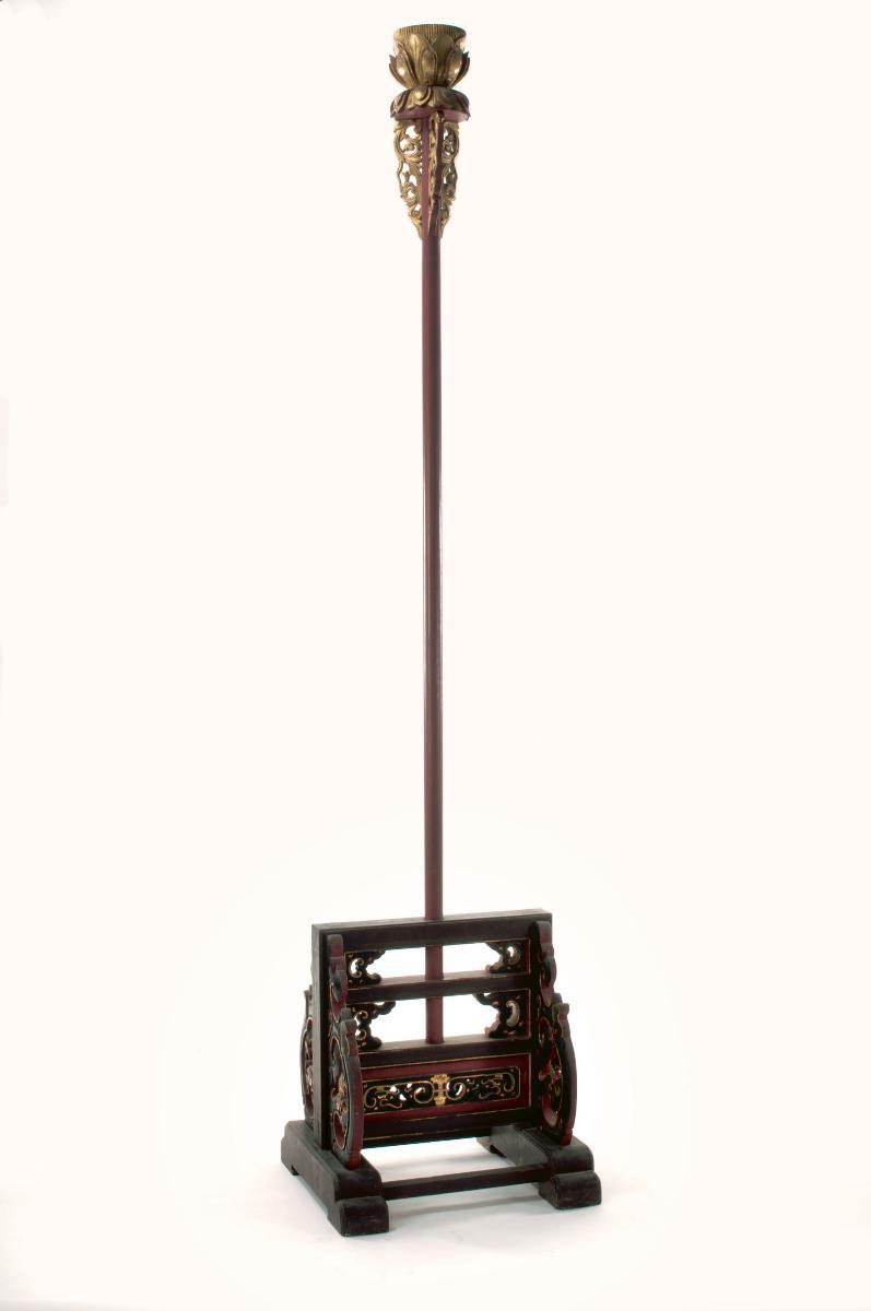 This is a cylindrical-shaped lantern bearing the surname of the household. On one side of the lantern bears the Chinese characters ‘Chen Fu’ (陈府), indicating that it belongs to the Chen family. The other side bears auspicious images and symbols of Chinese culture. It is also marked with the Chinese characters ‘Tai Xing’ (泰兴), a city in China, which is the region that the surname originates from. Surname lanterns are commonly used by Peranakan Chinese and are hung in front of the house during festive occassions to honour the ancestors and to remind the family of their roots.