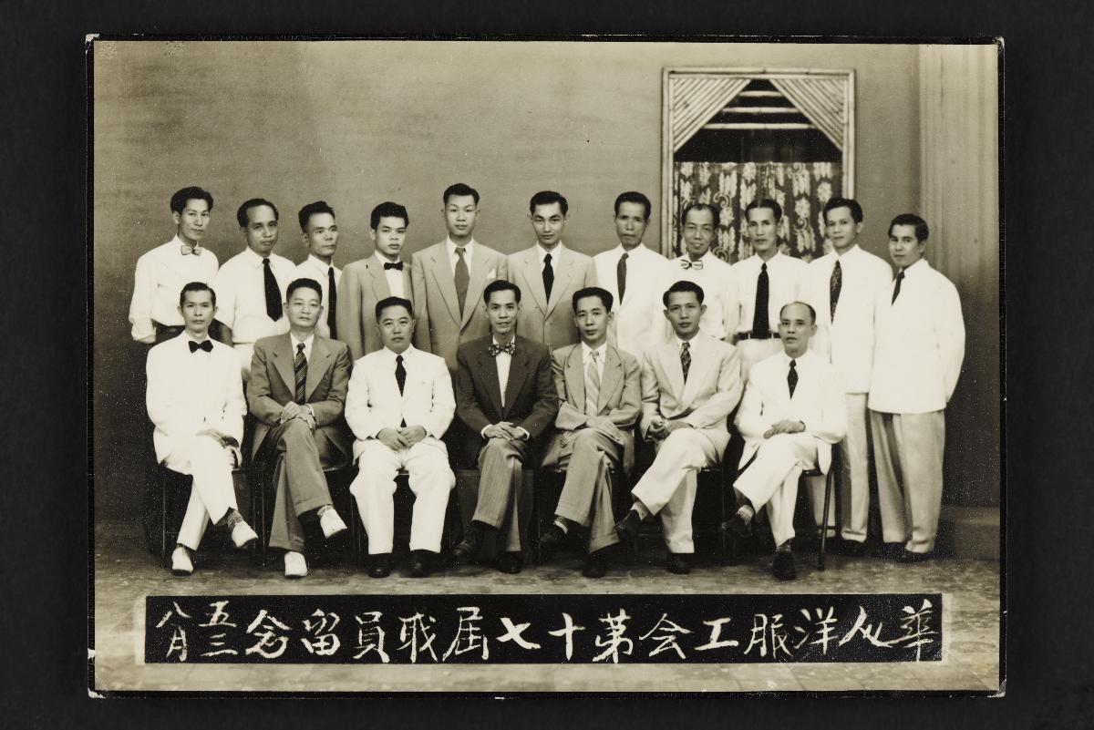 This photograph shows Mr Choo Foo Wah, founder of Fatman Singapore Gents' Wear Company, and his employees dressed in the shop's tailored suits at the shop located at 241 Jalan Besar. Mr Choo started out as an apprentice to a local tailor (specialising in making Western suits). In 1955, he set up his own business, Singapore Tailor, at Desker Road (1955–1957). Later the business was renamed Fatman Singapore Gents’ Wear Company, with its main shop in Jalan Besar (1957–2009), followed by the Whampoa area (2009–2018), as well as branches along Victoria Street (1975–1981) and in the Orchard Road area (1981–1994). Fatman Singapore Gents’ Wear Company was one of the local renowned tailor shops that specialised in the making of men’s Western suits as early as the 1950s. In the 1960s, with Western culture making greater inroads into the local fashion consciousness, there was an increasing popularity for made-to-measure clothing which led to a demand for tailors who could replicate coveted Western designs. Between the 1970s and the 1980s, Fatman was one of the most renowned tailor shops in Singapore, ordering fabrics from London to satiate the growing demands of consumers, who also appreciated Fatman's fine workmanship.