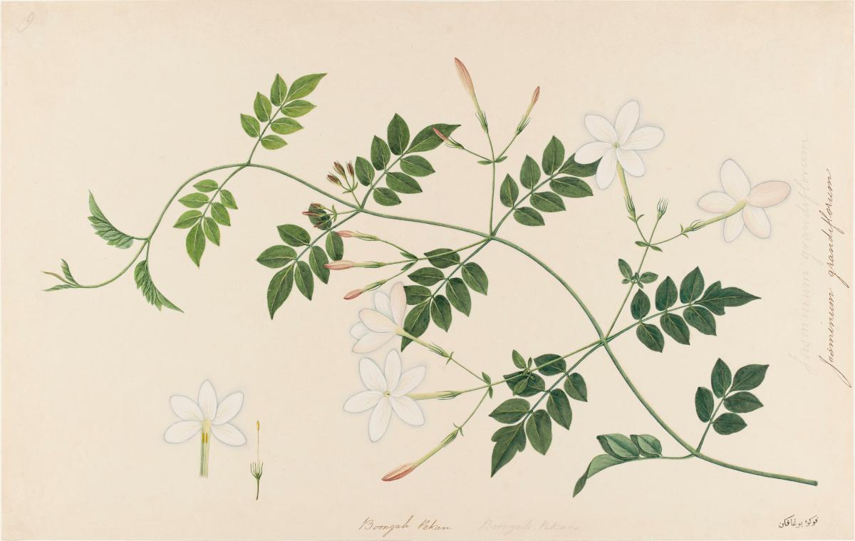 The Madhumalati (The Night-flowering Jasmine) is regarded as one of the four great medieval Indian Sufi romances. Through the meddling of nymphs, Prince Manohar meets Princess Madhumalati from another kingdom. They fall in love but are prematurely separated. In pain, Manohar wanders the countryside as a yogi while Madhumalati is turned into a bird. She roams the world in search of Manohar. The original Madhumalati, based on the Persian masnavi (couplet form), was composed by Mir Sayyid Manjhan Rajgiri in Awadhi, an Eastern Hindavi language, in 1545. This manuscript copy, written as a Hindi caupai (couplet) in Devanagari script, was reproduced by Pandit Hastisagara, pupil of Pandit Harshasagaraji, in samvat 1824 (1768 AD).