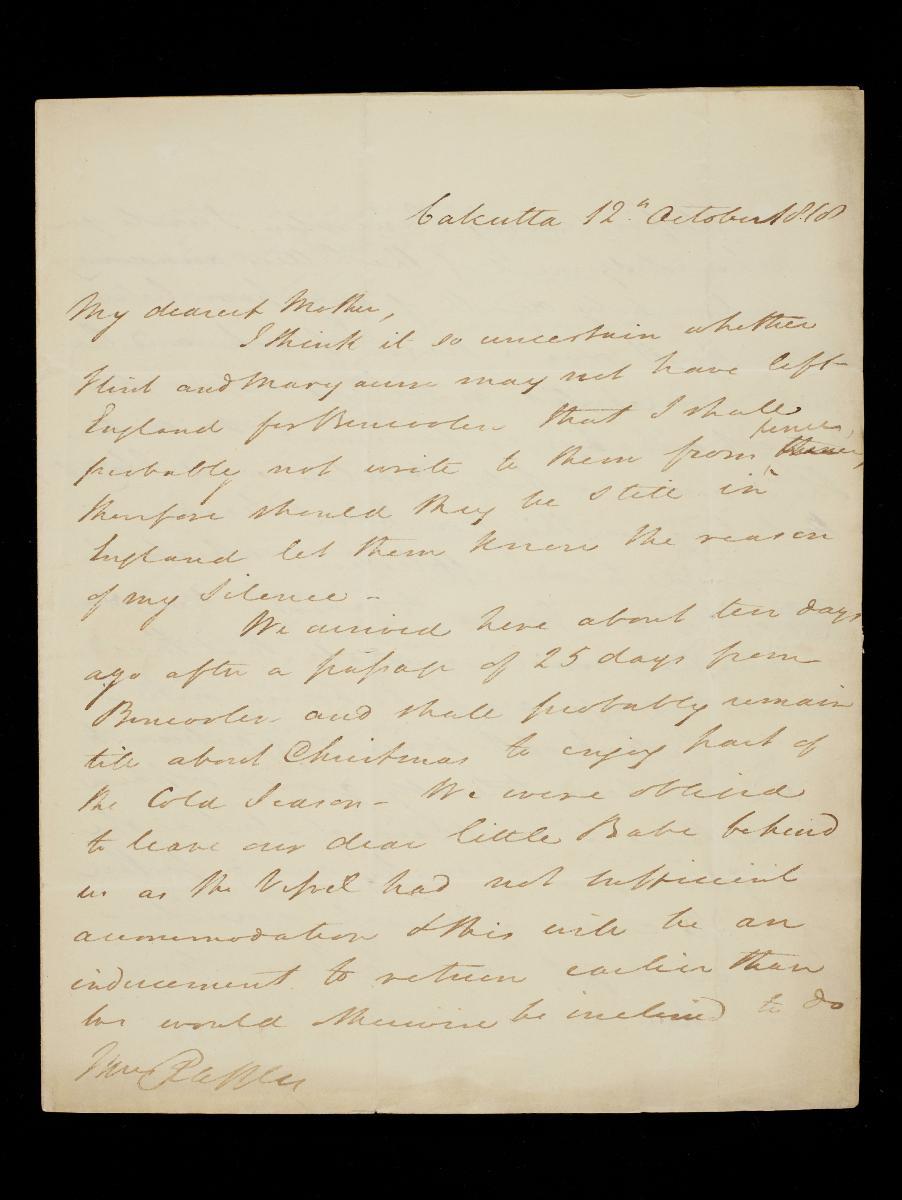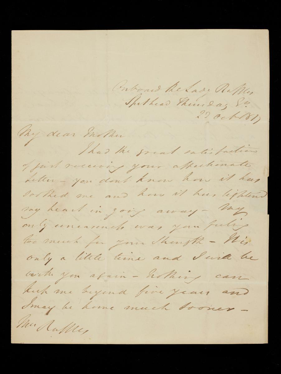 Letter from Raffles to his mother, Calcutta – on board the Nearchus