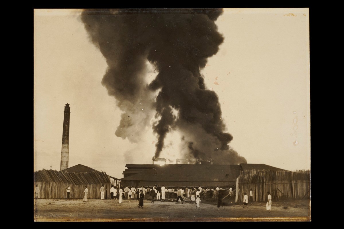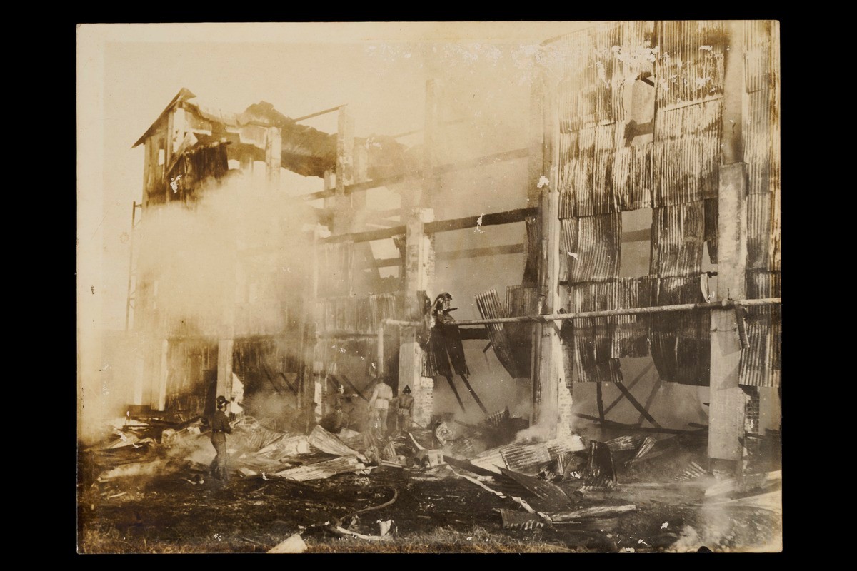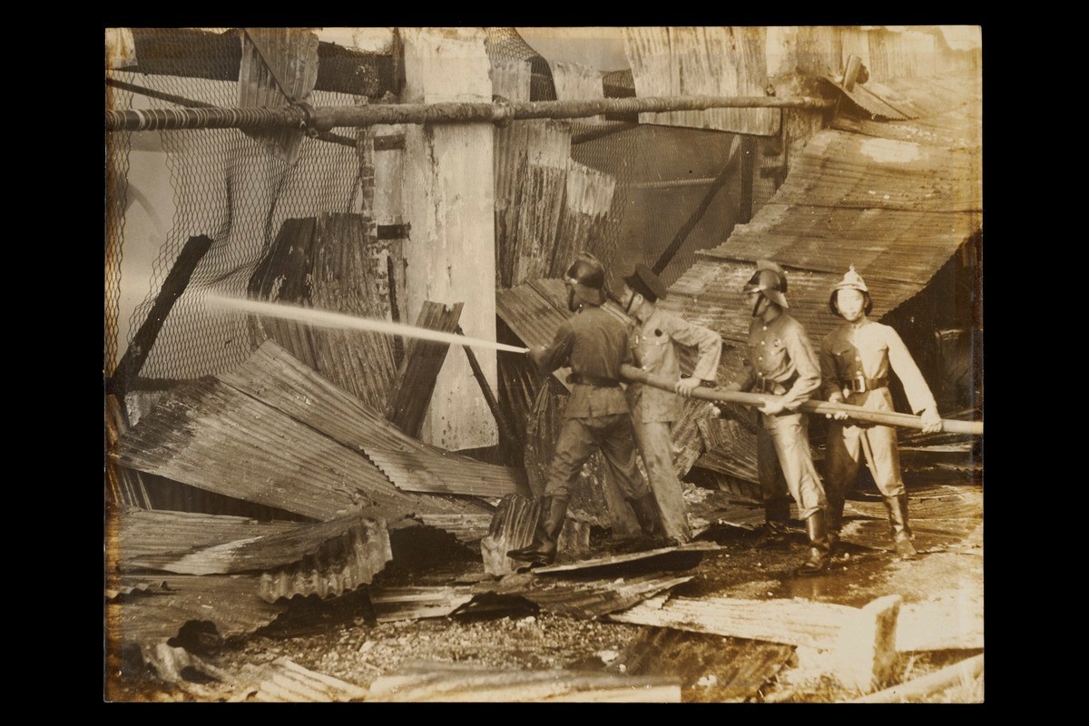 Lui Hock Seng (b. 1937) is a self-taught photographer who was active on the scene during the 1960s and 1970s. His works belong to the pictorial photography movement and his pictures largely depict the landscapes of trades of a rapidly-changing Singapore during the 1960s and 1970s. This photograph of two fire fighters trying to put out a fire from a house was taken at Guillemard Road, near Sims Road.