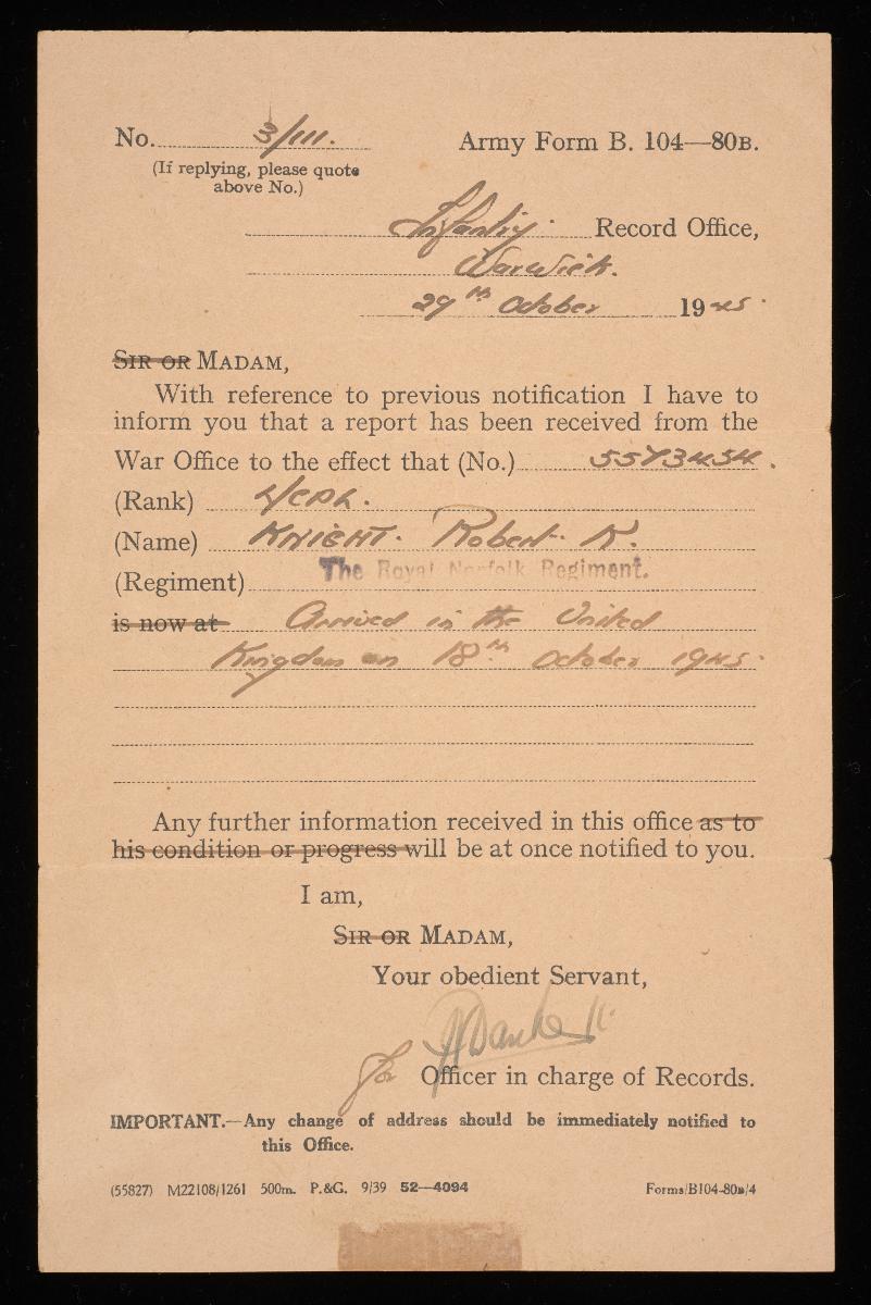 Letter to Mrs J. S. Duncan from W. A. Echelon and Records