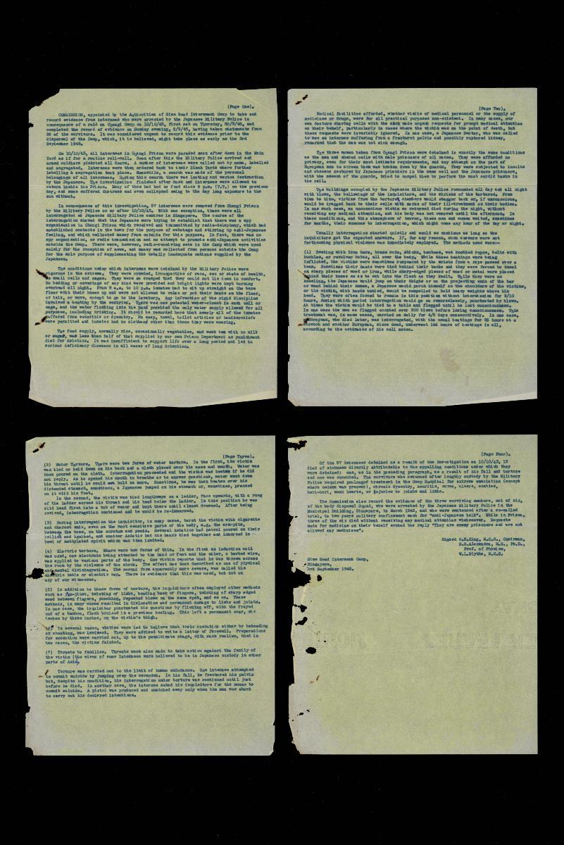 This is a type-written 19 page report on various aspects of camp life in Changi. It covers, amongst various things, what factories that prisoners of war set up in Changi produced; how many items were produced; news services; and sports and recreation. The report was prepared by C. G. Miller, a Warrant Officer I with the Royal Electrical and Mechanical Engineers, on 2 July 1945 in Changi.