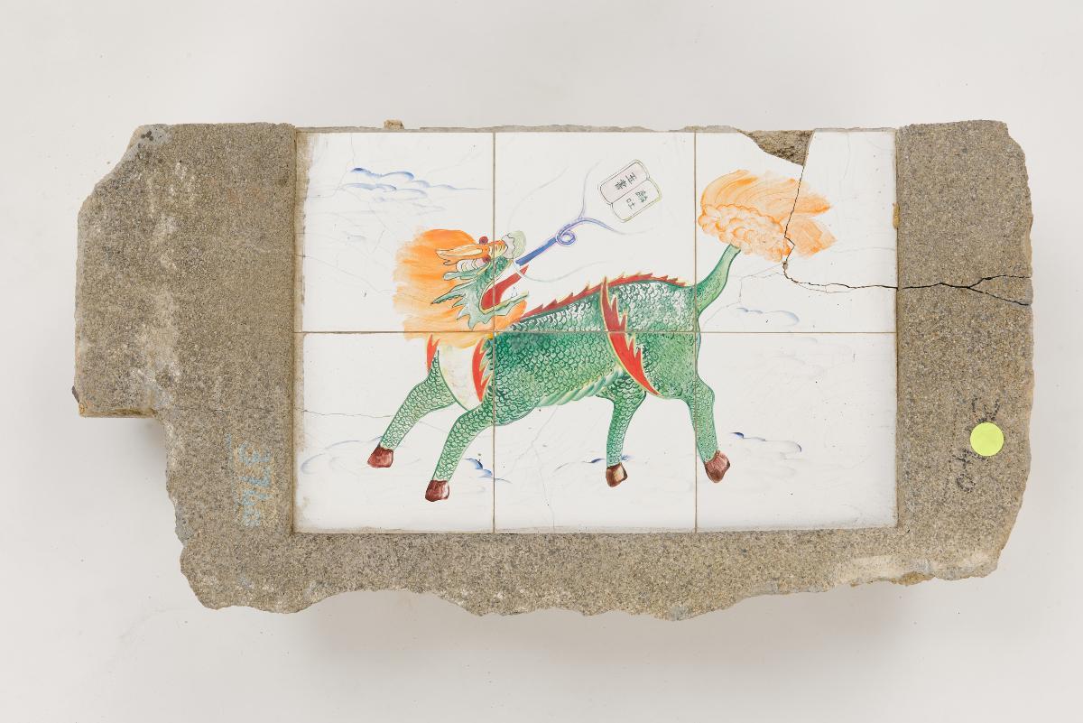 This tile panel illustrates the famous fruit-cutting scene originally described in the Quran (Sura Yusuf, verse 31) about the life of the prophet Yusuf. The Quranic tale about the trials and tribulations of Yusuf and his incomparable beauty became popularised as an epic Sufi romance, Yusuf o Zulaykha, through the adaptation by the great Persian poet, Jami, in the 15th century. The pictorial composition of this panel probably drew from this literary tradition. Such figural compositions were popular decorative elements for garden pavilions of the period.