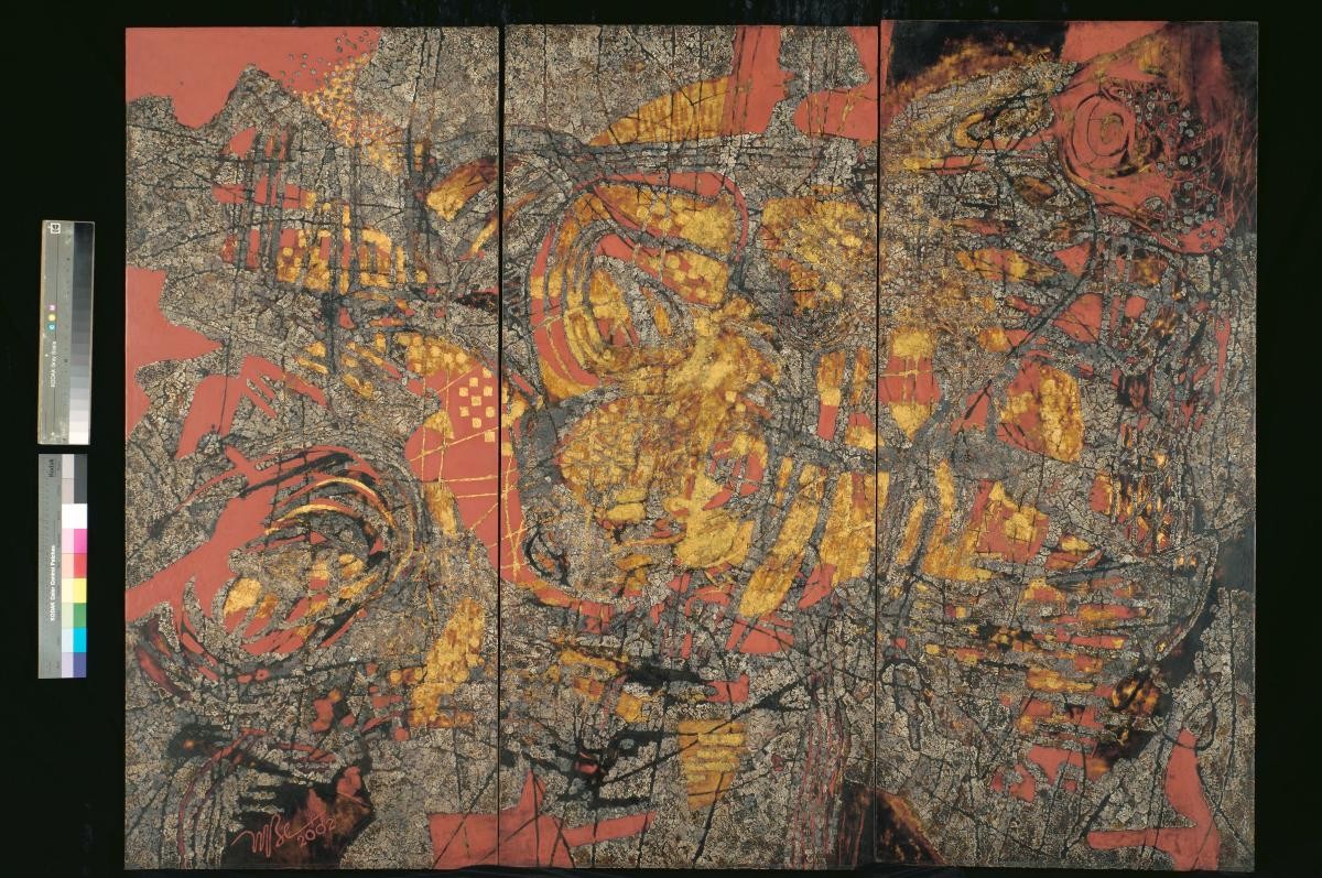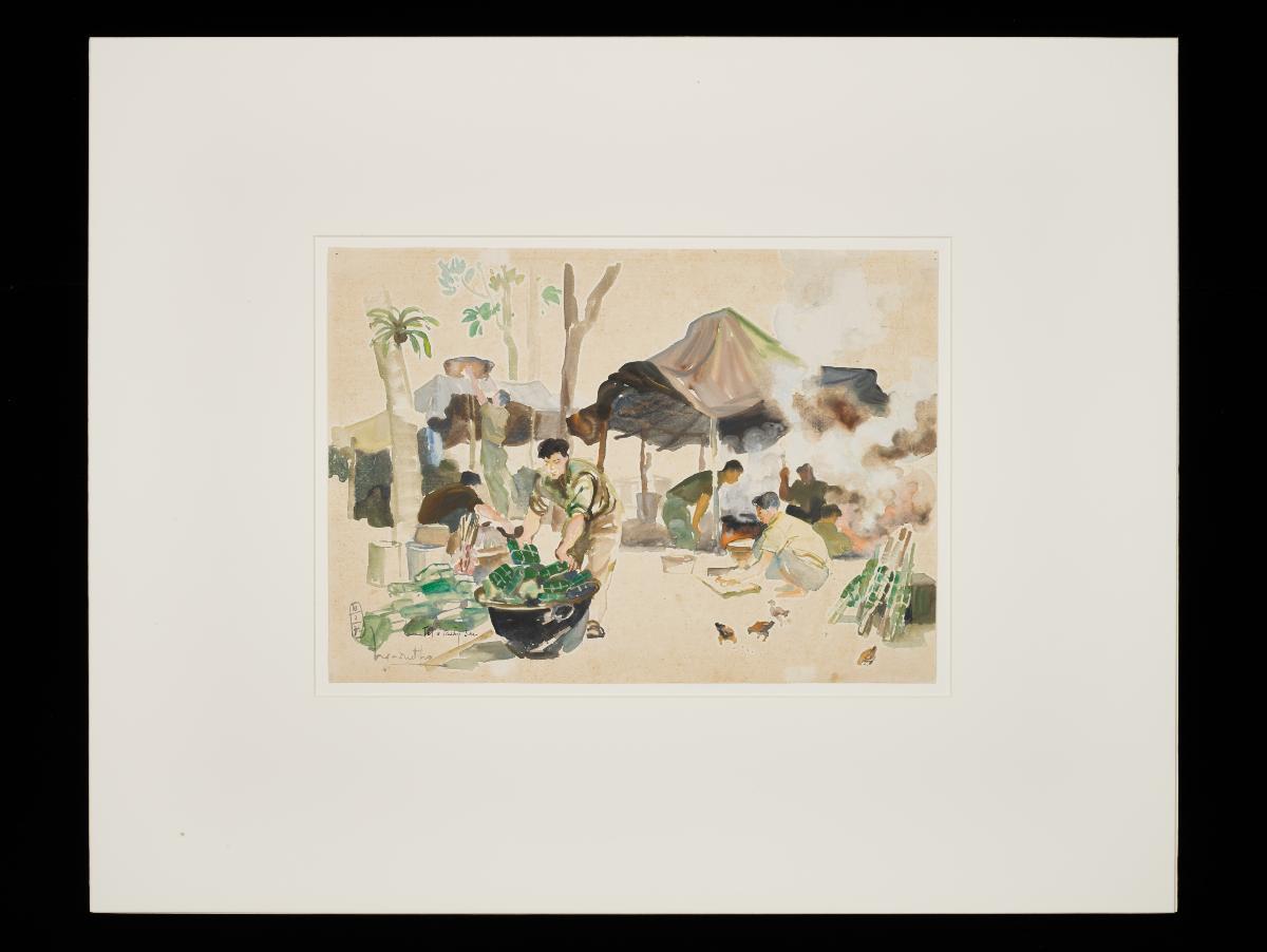 Artists from Vietnam played an integral role in both the First Indochina War (1946-1954), where they fought for independence from French colonial rule, and the Second Indochina War (commonly known as the Vietnam War or the American War), which continued until 1975. Artists documented conditions for soldiers in the battlefields, as well as for civilians in the cities and the countryside. In the Democratic Republic of Vietnam (North Vietnam or DRV), artists were employed by the military or the state; sometimes their works were created as personal mementoes, but they also created propagandistic and sometimes romantic images to articulate and advocate ideological positions. Sometimes these images were exhibited or published during the wartime. According to interviews with the artist, this artwork depicts the smoking and ruined remains of a forest on the Ho Chi Minh trail, after a B52 bombing attack. Cluster bombs would also be dropped, resulting in destructive fires across the landscape. The Ho Chi Minh Trail was the collective name for a network of trails and routes through the Trường Sơn mountains in Eastern Laos and Cambodia, via which the North Vietnamese army was able to clandestinely move into South Vietnam and transport vital supplies. In this striking panoramic image, the desolation of the scene is conveyed through Bùi Quang Ánh's monochromatic palette and use of stark, angular brushwork in ink. While most art in North Vietnam followed a realistic style, as mandated by the official guidelines on art production, Bùi Quang Ánh's work nonetheless gives the impression of a defined personal style.This artwork is part of a significant collection of drawings, sketches, paintings, posters and photographs in Singapore’s National Collection. These works reflect the diversity of artistic production during the First and Second Indochina Wars among artists affiliated with the communist side of the conflict. Many key figures active as war artists during this period have also had a lasting impact on the development of modern art in Vietnam and beyond.