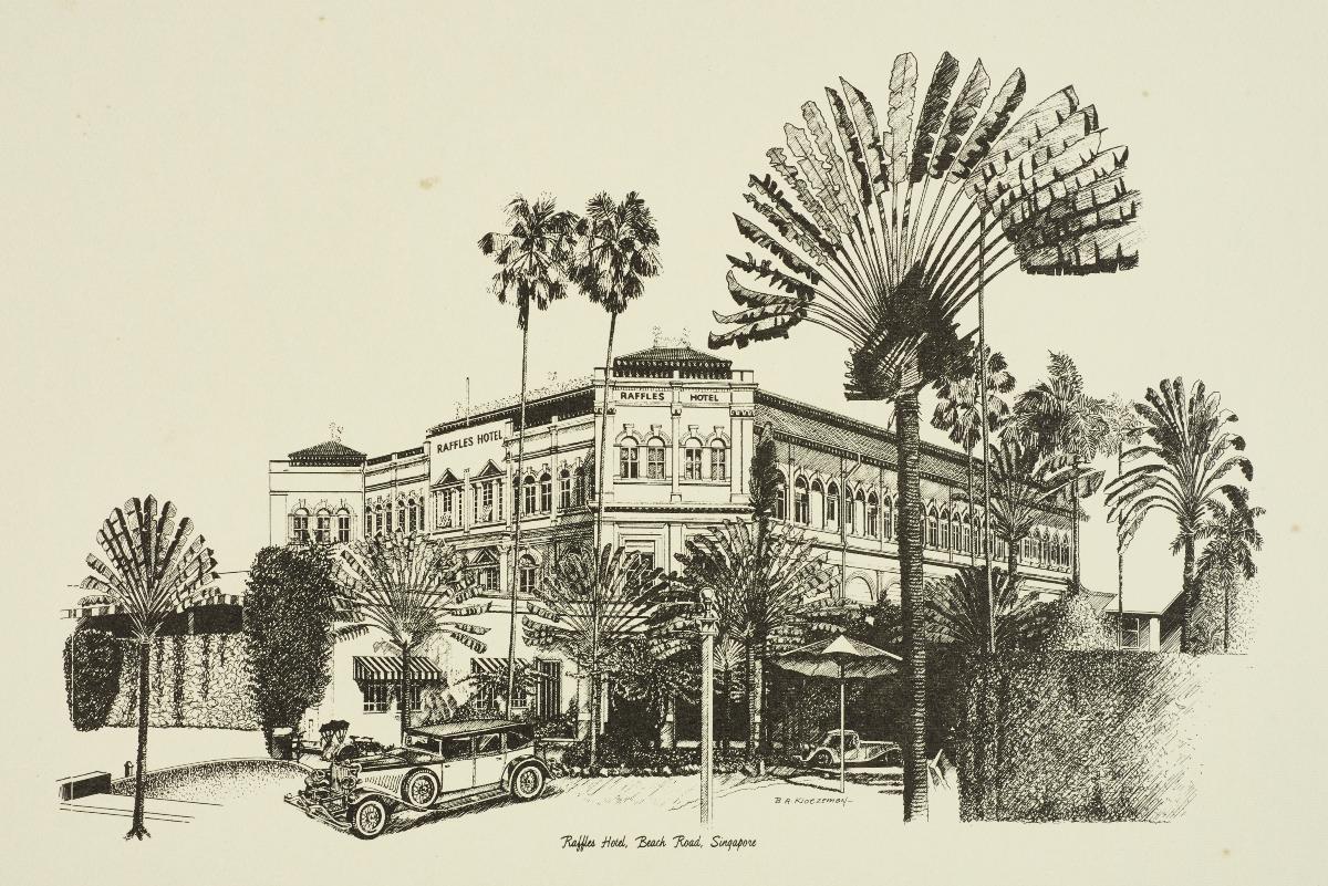 This is a line drawing of Goodwood Park Hotel in Singapore by Ben Kloezeman. Kloezeman, a former art director of Dutch-Indonesian descent at advertising firm Mccann-Erickson, was known for his fine line drawing technique. Following his retirement in the mid-1970s, he pursued a career as a freelance artist and designer, creating a series of art inspired by buildings and scenes in Singapore — of which this drawing is one.