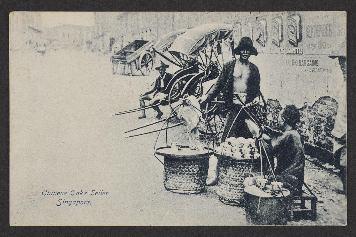 This postcard depicts a ‘Chinese Street’ in Singapore, with rickshaws on one side and houses with laundry hung out to dry on the other, as people walk through the streets. The postcards composition is impressionistic, taking a ‘slice-of-life’ moment in a street, making it a good example of life in Singapore in the early 1900s.
