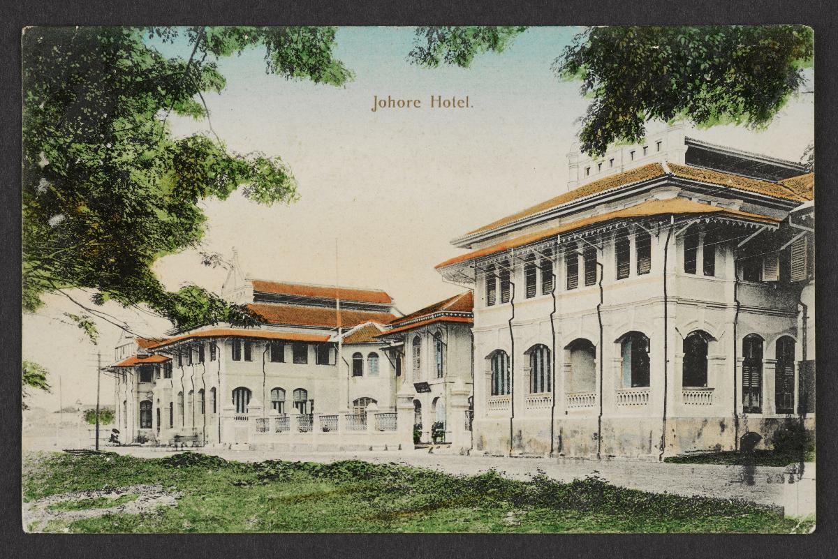 In the early 1900s, with steam ship travel in vogue and made easier with the opening of the Suez canal, travelers would often put up in hotels at various designated stops in the region. This postcard depicts the pavilion and lawn on the Hotel des Indes in Batavia (modern-day Jakarta, Indonesia). The Hotel des Indes was established in Batavia (now Jakarta, Indonesia) in 1829 by a French man named Antoine Surleon Chaulan. Originally named Hotel de Provence, it was renamed Hotel des Indes in 1856. The hotel survived until 1971, when it was demolished to make space for a shopping mall. This postcard includes details such as the laundry racks set up on the lawn.