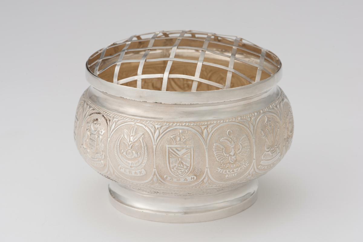 This National Coat of Arms (also known as the State Crest) was made in the Baharuddin Vocational Institute (1965-1990) and displayed in the old Parliament House prior to the Parliament’s move to the new Parliament House in 1999. Officially adopted on 3 December 1959 at the installation of Singapore’s first local Yang di-Pertuan Negara (Head of State) Yusof bin Ishak, the National Coat of Arms embodies Singapore’s values and ideals, and was introduced to unite and instill loyalty amongst people of the new self-governing multiracial state.