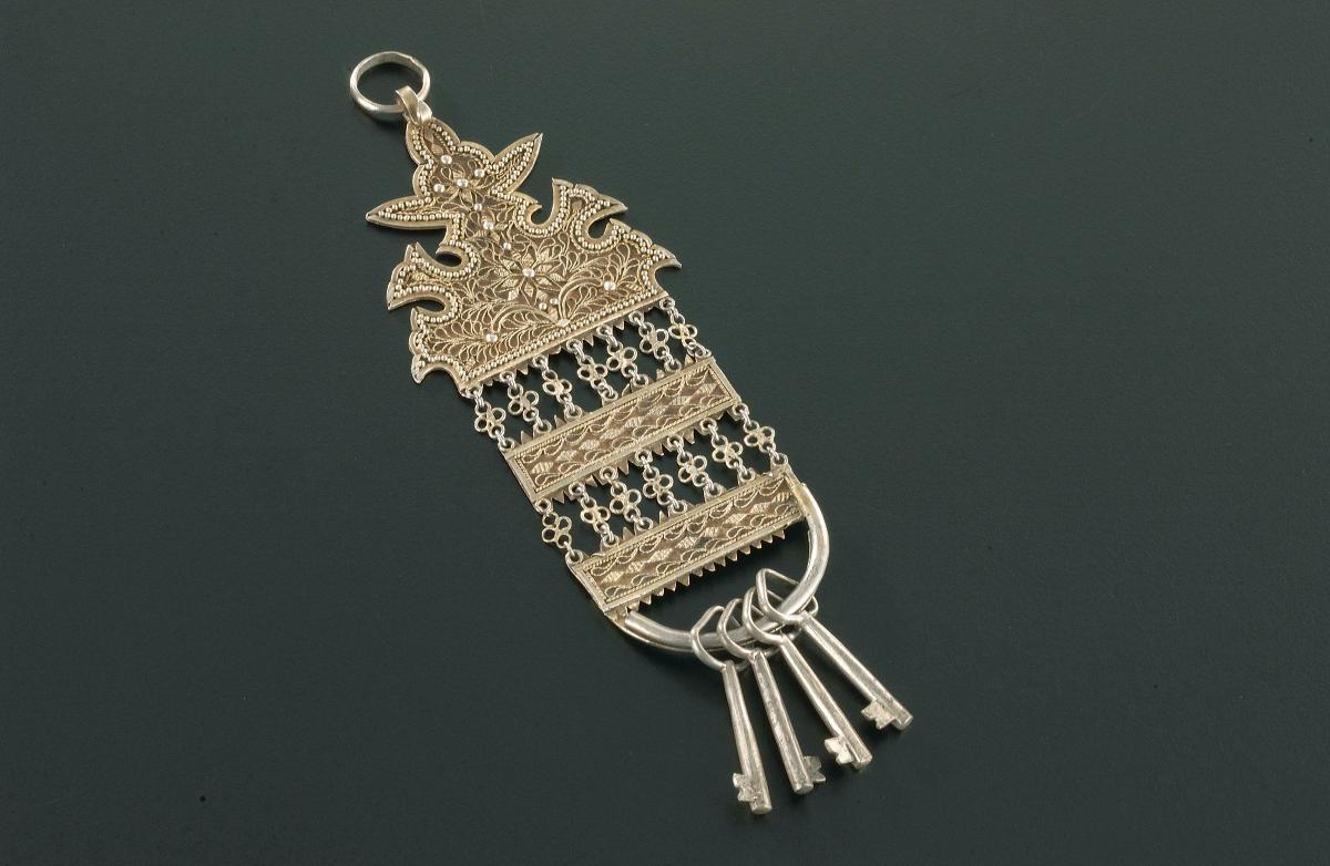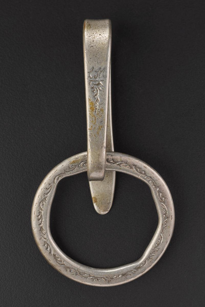 Key holders were fashionable amongst the wealthy and examples made of silver recall the prosperous galleon trade between Mexico and Manila, which made available abundant supplies of silver in the Philippines. This key holder reportedly belonged to the donor’s great-grandmother, Lina Ortaliz Montilla (1868-1939).