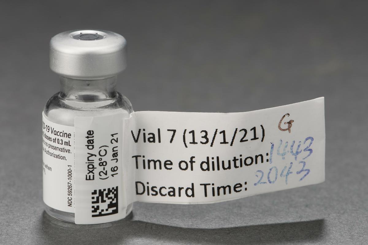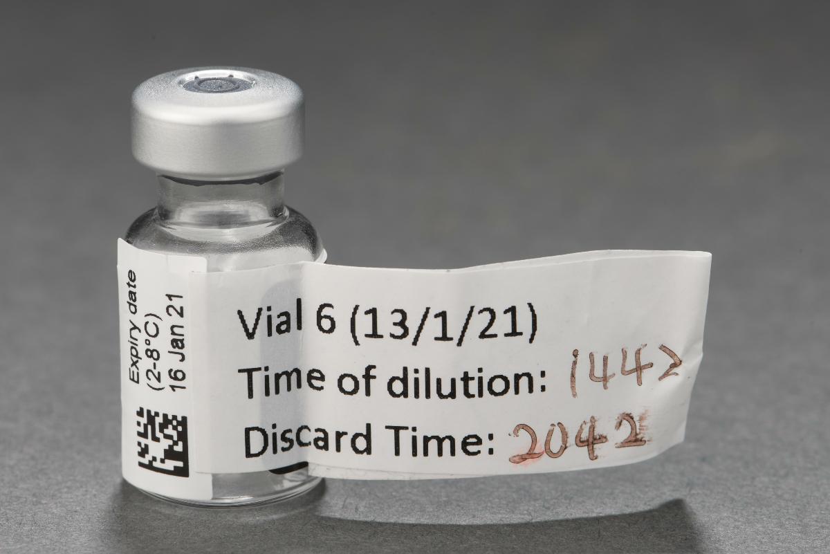 Nearly a year after the first COVID-19 cases were detected in Wuhan, China, in December 2019, vaccinations to provide immunity against the disease were introduced. The first shipment of the vaccines, developed by pharmaceutical companies Pfizer and BioNTech, arrived in Singapore on 21 December 2020, kickstarting Singapore’s national vaccination programme. Using the new messenger RNA (mRNA) technology, the Pfizer-BioNTech vaccine is administered over two primary doses and is known to have a higher efficacy against COVID-19 over conventional vaccine methods. Along with the other mRNA vaccine developed by Moderna, the Pfizer-BioNTech vaccine is part of Singapore’s national vaccination programme, where all eligible Singaporeans and long-term residents are highly encouraged to get vaccinated to mitigate infection and the risk of transmission as Singapore seeks to transit from pandemic towards an endemic state. This vial contained the Pfizer-BioNTech vaccine administered on senior staff nurse Sarah Lim from the National Centre for Infectious Diseases, the first person in Singapore to receive the vaccination.