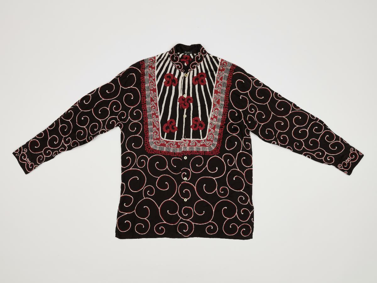 Made by Indonesian fashion label Bin House, this shirt has a geometric pattern – called "ceplok" – with contrasting colour on the button placket and cuffs. The pinks and greens mirror the brand colours of the Peranakan Museum.This shirt was worn by Dr Kenson Kwok, Founding Director of Asian Civilisations Museum and Peranakan Museum (TPM), at the opening of TPM in 2008.Since the post-war period, men in Singapore, Malaysia, and Indonesia have worn batik shirts at important events to express their cultural identity. At events that involve political figures, batik shirts are especially symbolic of national and regional pride.