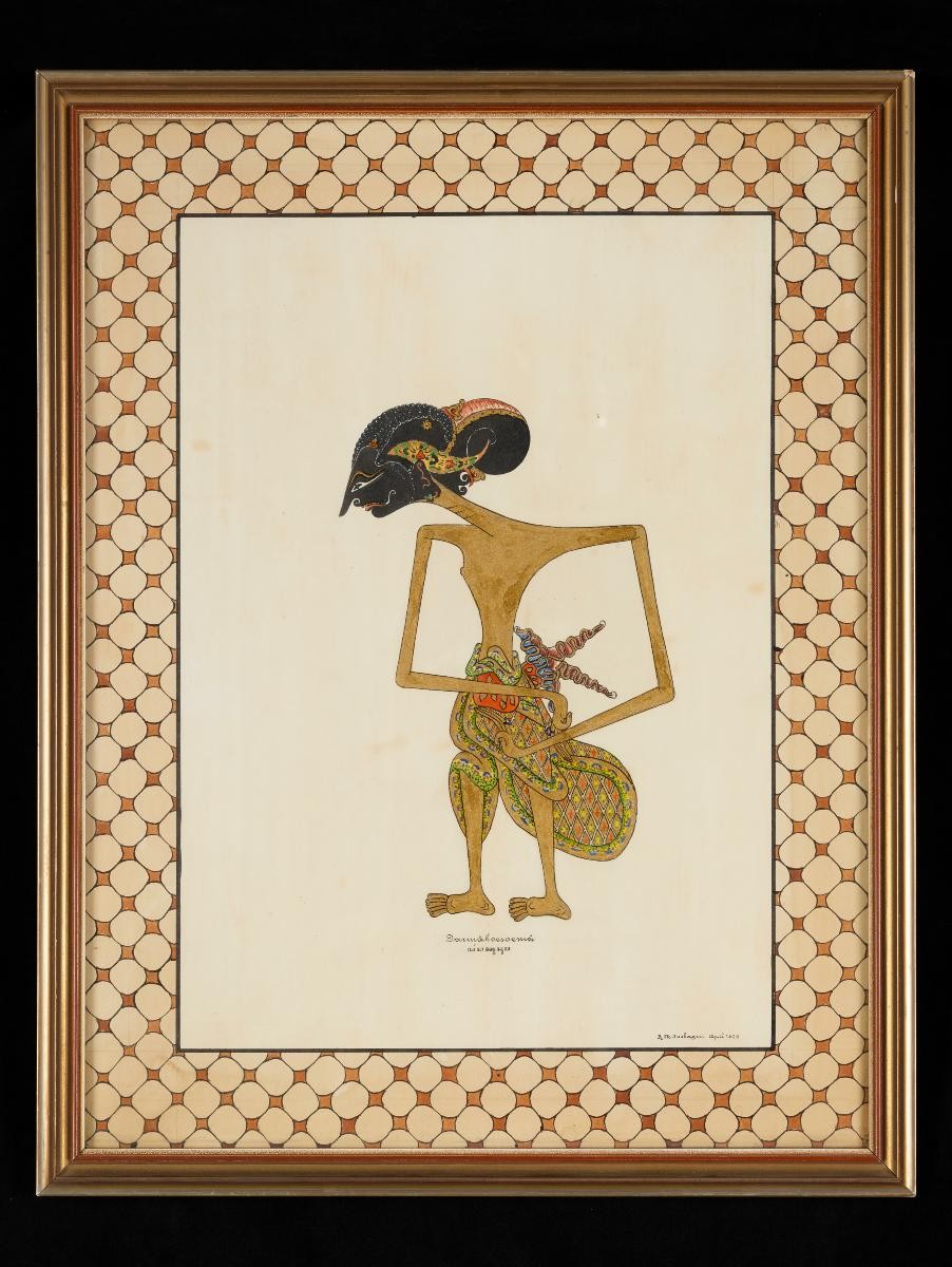 This painting depicts the ninth Sikh guru, Tegh Bahadur (1621–75), with an attendant receiving visitors. It is in the style of Punjab and Sikh school miniature paintings, both of which flourished under the patronage of rulers and wealthy patrons in Punjab in the 19th century. The unrefined style indicates that it is probably “bazaar art” rather than a work commissioned by a ruler or wealthy patron. Paintings like this were typically sold in the bazaars of Amritsar, India, in the late 19th century. Portraits of historical and religious people were a common theme.Guru Tegh Bahadur is remembered as the second Sikh martyr, executed under the orders of Mughal emperor Aurangzeb for his refusal to convert to Islam and for defending the Hindu brahmins of Kashmir against forced conversion. Poetry he wrote is included in the Guru Granth Sahib, the central religious scripture of Sikhism.