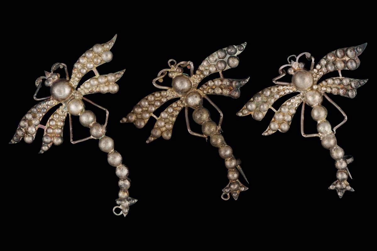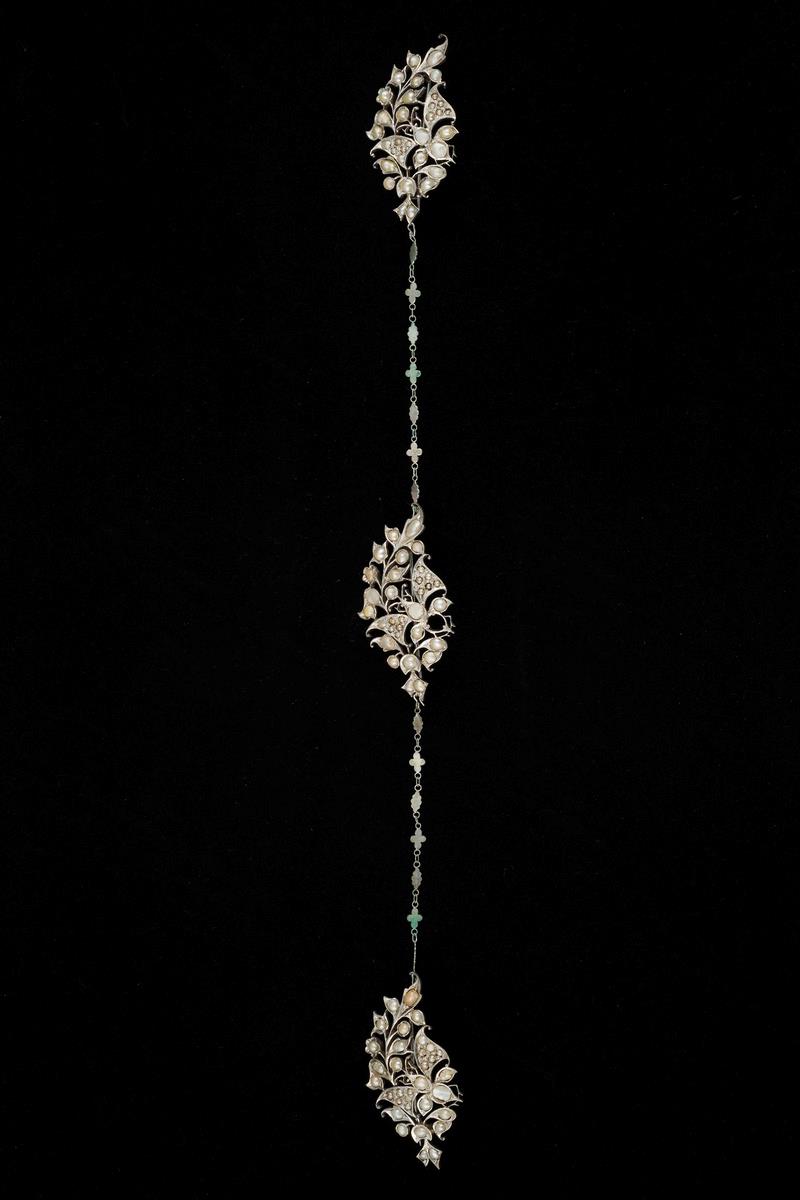 Silver and pearl mourning ornaments were worn by nonyas for a period of three years to commemorate the loss of a loved one. During this time, gold and diamond ornaments were set aside. This "kerosang" (fastener) is part of a jewellery group which belonged to Gwee Luan Neo (1884-1953) and was bequeathed to her daughter, Lee Chuan Neo (1912-1989), and thence to her only child Mona Tan (b. 1945).