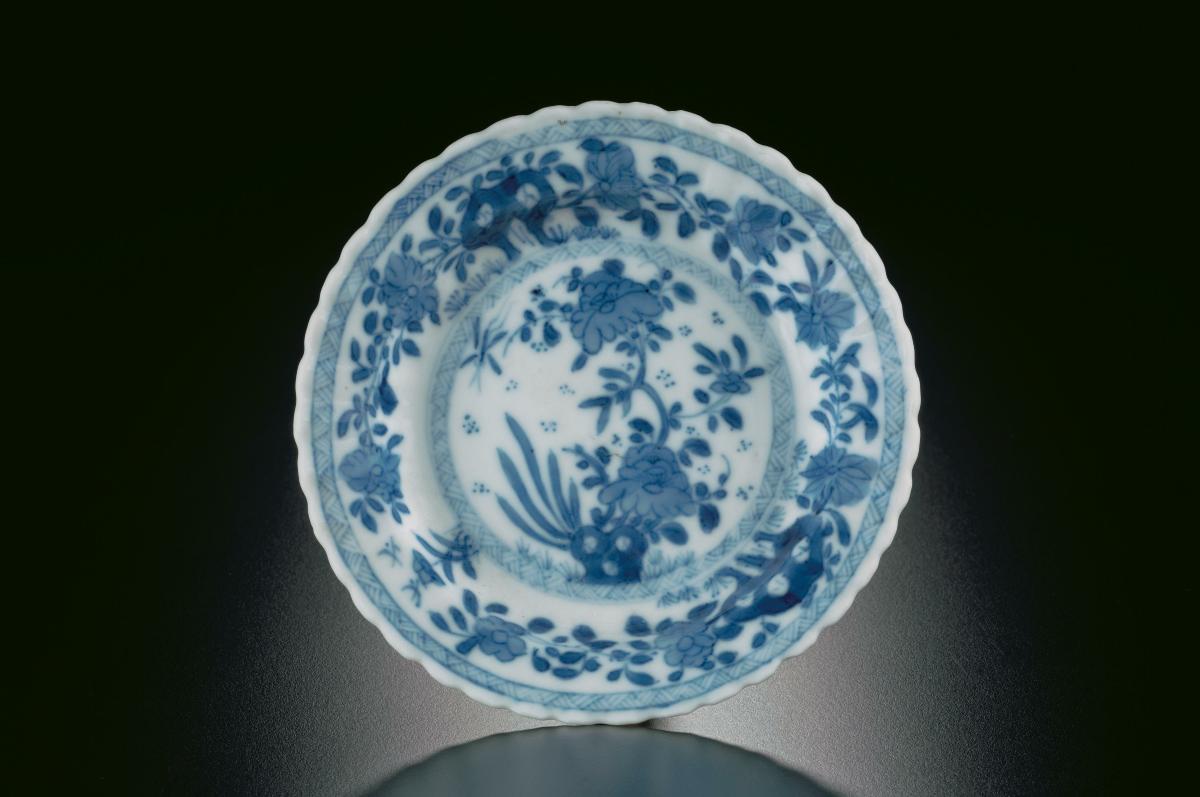 This blue and white bowl with a scalloped rim has a circular central panel decorated with a Buddha’s Hand citron representing happiness and longevity, and a surrounding band comprising a geometric pattern interpersed with flowers and plants. This type of porcelain was generally used by the Peranakan community for ancestral worship and for daily use. The colour blue was regarded as a substitute for black, the colour of mourning.This artefact belonged to Mdm Lim Yeok Quan (1887-1958), wife of Mr Ong Peng Hock (1889-1968) who was the son of notable Peranakan businessman Ong Sam Leong (1857-1918). Mr and Mrs Ong Peng Hock lived at Christmas Island Villa, 47 Marine Parade Road, Singapore where this item was used for ritual purposes on the family altar and for family meals on sombre occasions.