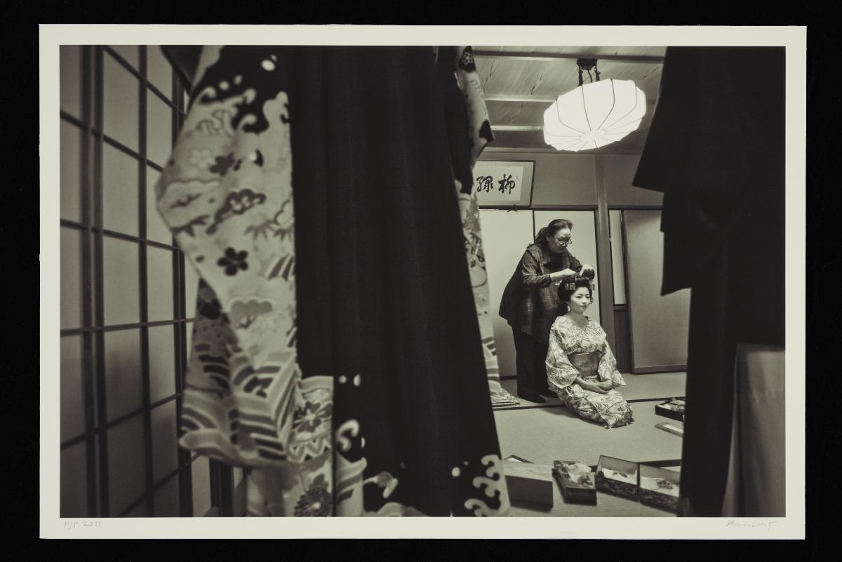 Geiko Sayaka helping Maiko Satsuki with her kanzashi (hair ornaments)Kyoto, 2011Archival pigment print on photo rag