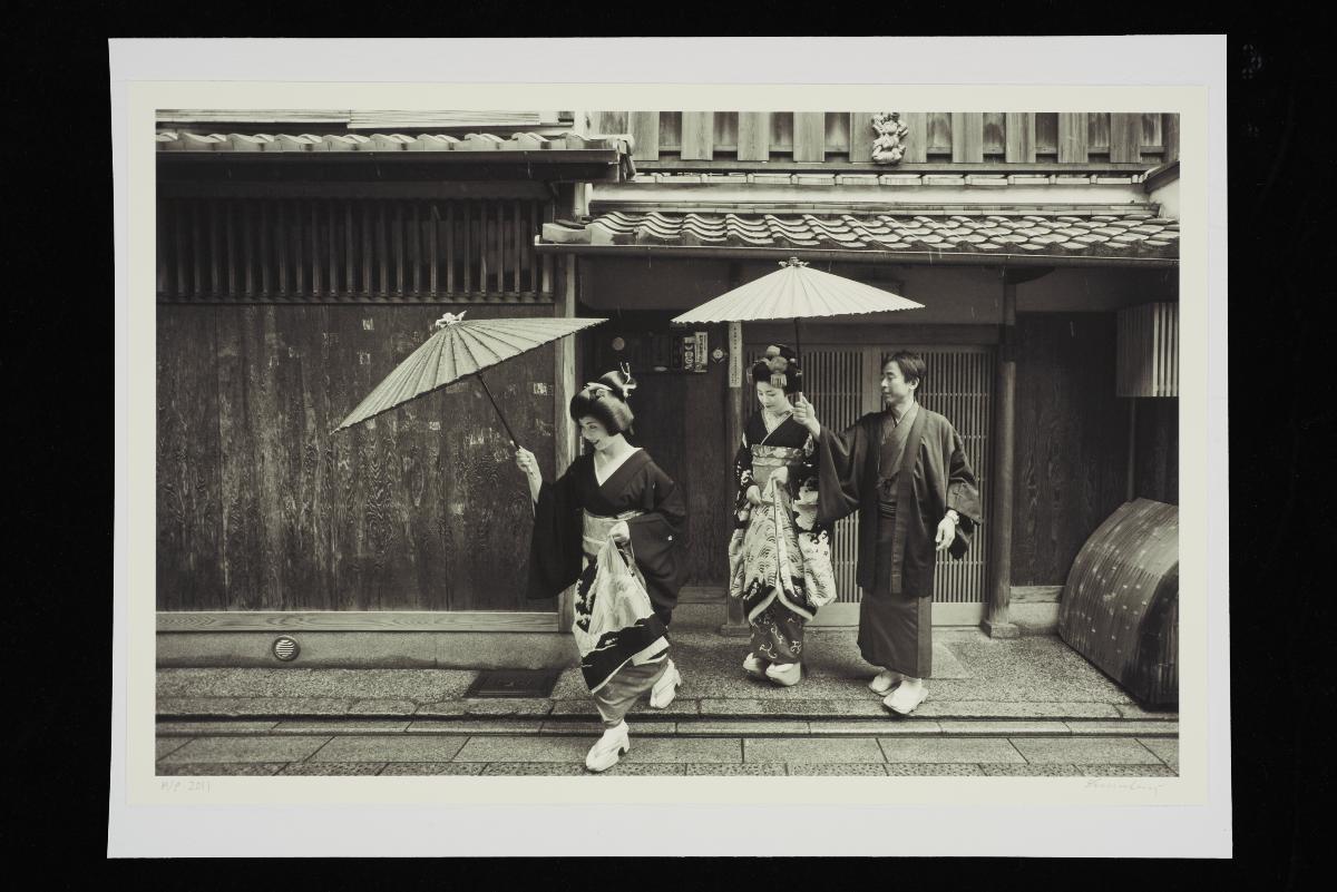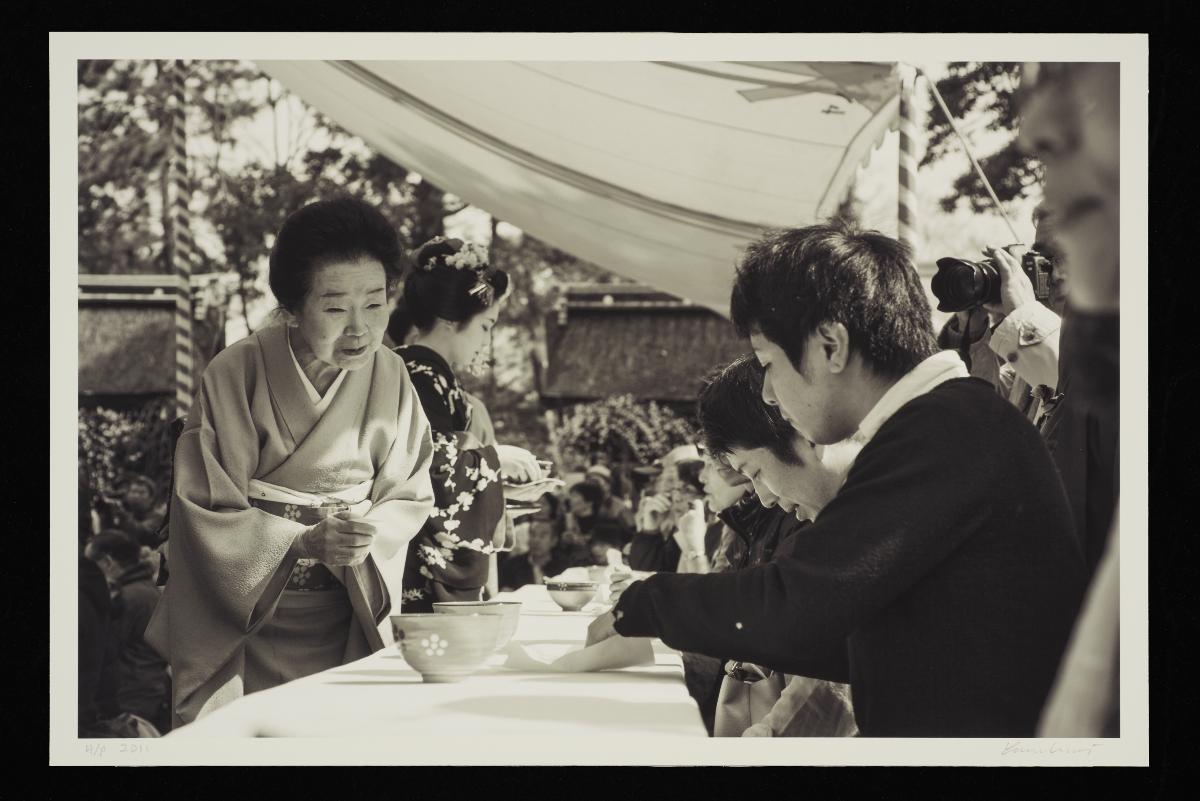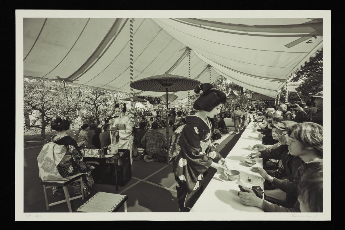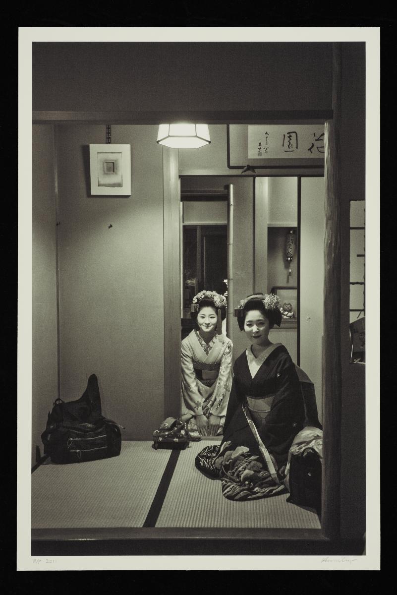 Geiko and maiko entertaining guestsHigashiyama ward, Kyoto, 2011Archival pigment print on photo ragGeiko Sayaka and Maiko Satsuki entertaining their guests with a traditional dance at the end of a formal dinner in Gion Kobu kagai.