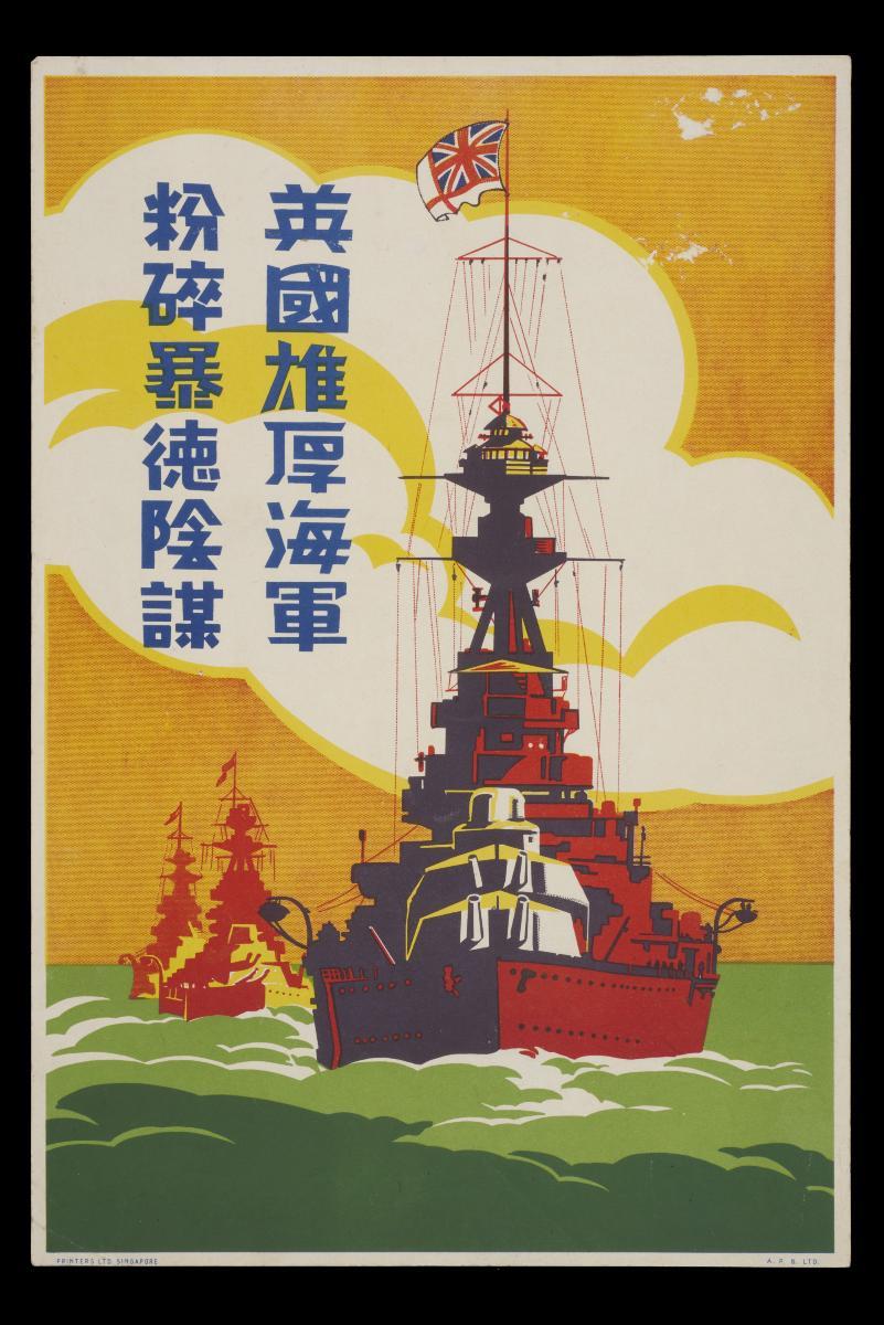 WWII poster titled 为争取权利 请慨借金钱 赞助英属海峡殖民地战债 (Sponsor the Fleet British Straight to Sea)