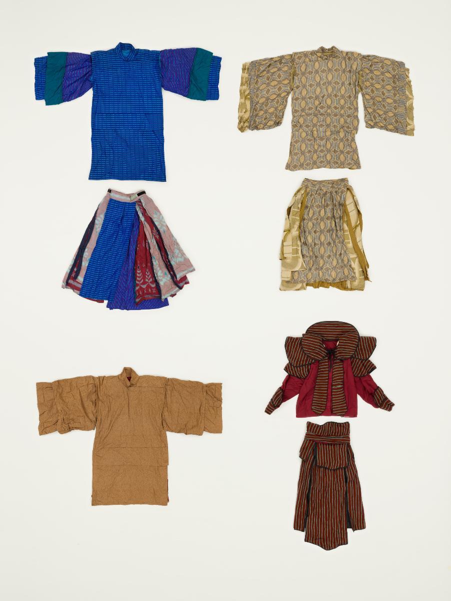 The six costumes are from the play, The Tragedy of Macbeth which was staged in an abandoned warehouse on Merbau Road (March 16-21, 23-28 - April 3, 1993). The production was also part of Young People's Theatre (March 16-20).Directed by William Teo, the Shakespeare tragedy was produced by his company Asia in Theatre Research Circus. The costumes here reveal Teo's fascination with inter-cultural elements. The materials and styles as for example, skirts made of Indian fabrics or Kimono robes show his approach to dressing his various characters. This play was staged in the same warehouse where he had produced The Conference of Birds (1991) - a play that signaled a turning point in his art. The following year Teo and his troupe participated in a month long workshop run by Georges Bigot, who was one of Ariane Mnouchkine’s actors.