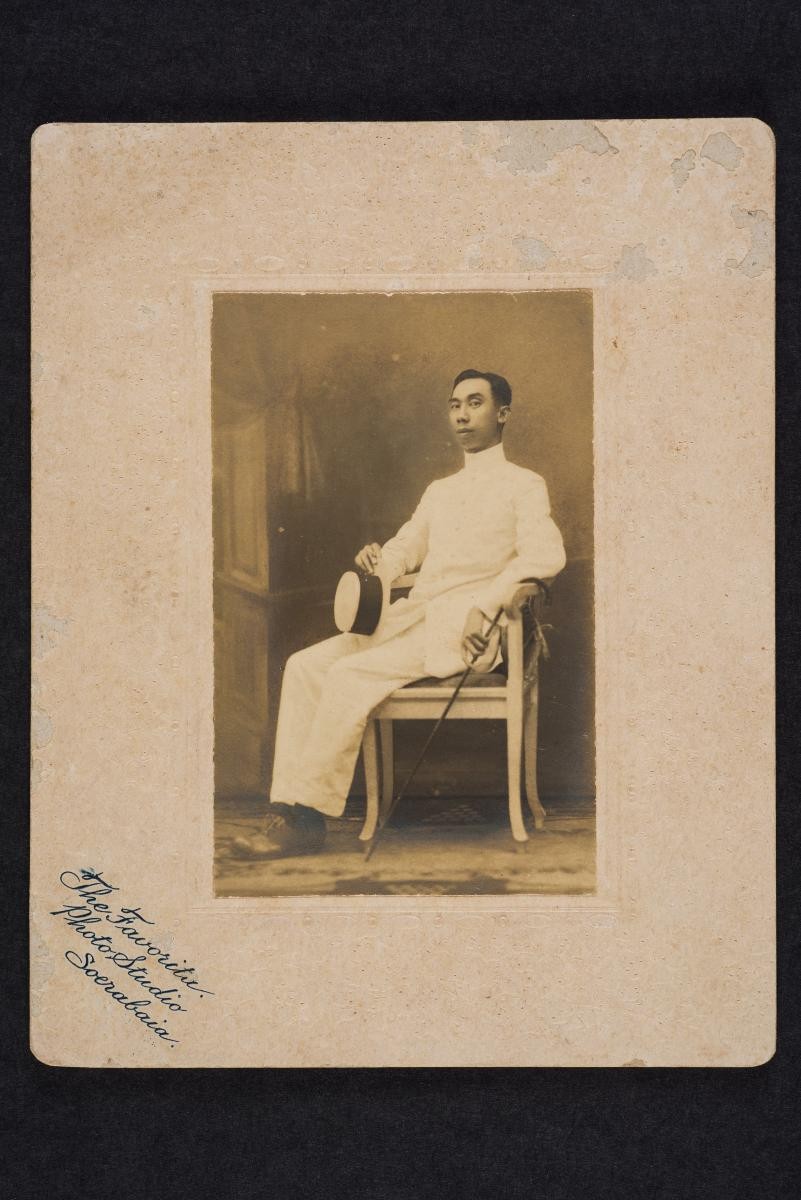 This studio photograph shows a young man in a suit and cap. The studio mark 'Beng Ik Tjiang, Bandoeng (Java)' is stamped on the backing card. Inscribed under the photograph is the date "28-5-18".Photography studios had been established across the Straits Settlements and the Dutch East Indies by the 1860s, with the earliest studios being European owned. Chinese and Japanese operated studios began appearing in increasing numbers in the 1890s, and by the early 20th century, these studios almost completely dominated the industry across Southeast Asia.