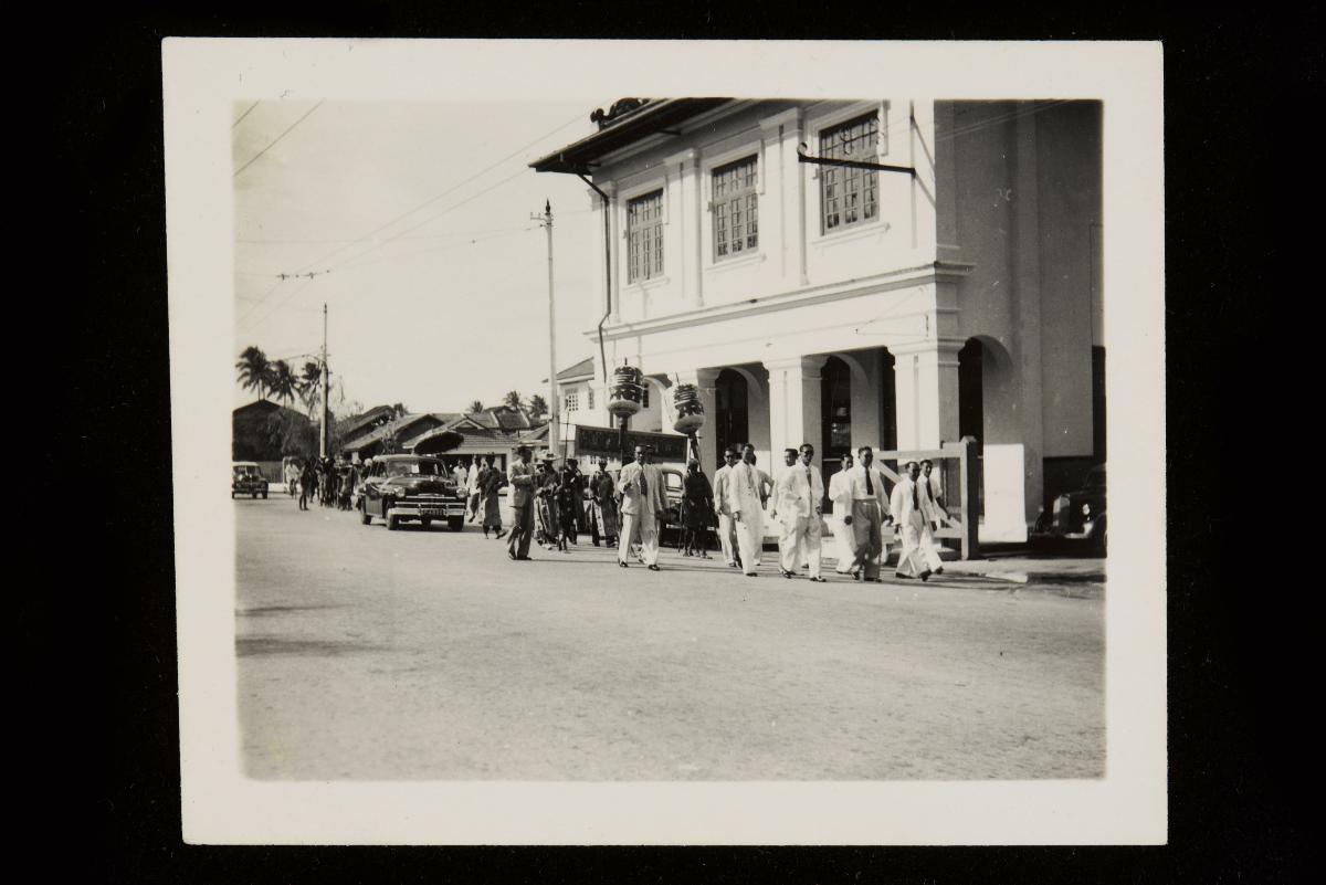 This photograph shows a car that is part of a Chinese Peranakan wedding procession.This photograph is part of a series of 74 photographs documenting a Peranakan wedding held in Penang in 1951. Peranakans commissioned photographs to document their families and important life events such as marriages and deaths. They also commissioned photographs to record their involvement in business enterprises, and in social causes such as schools and academic societies, religious groups, and in community and cultural associations. With improvements in camera technology, it became possible to take photographs without the assistance of a studio in the first decades of the 20th century.
