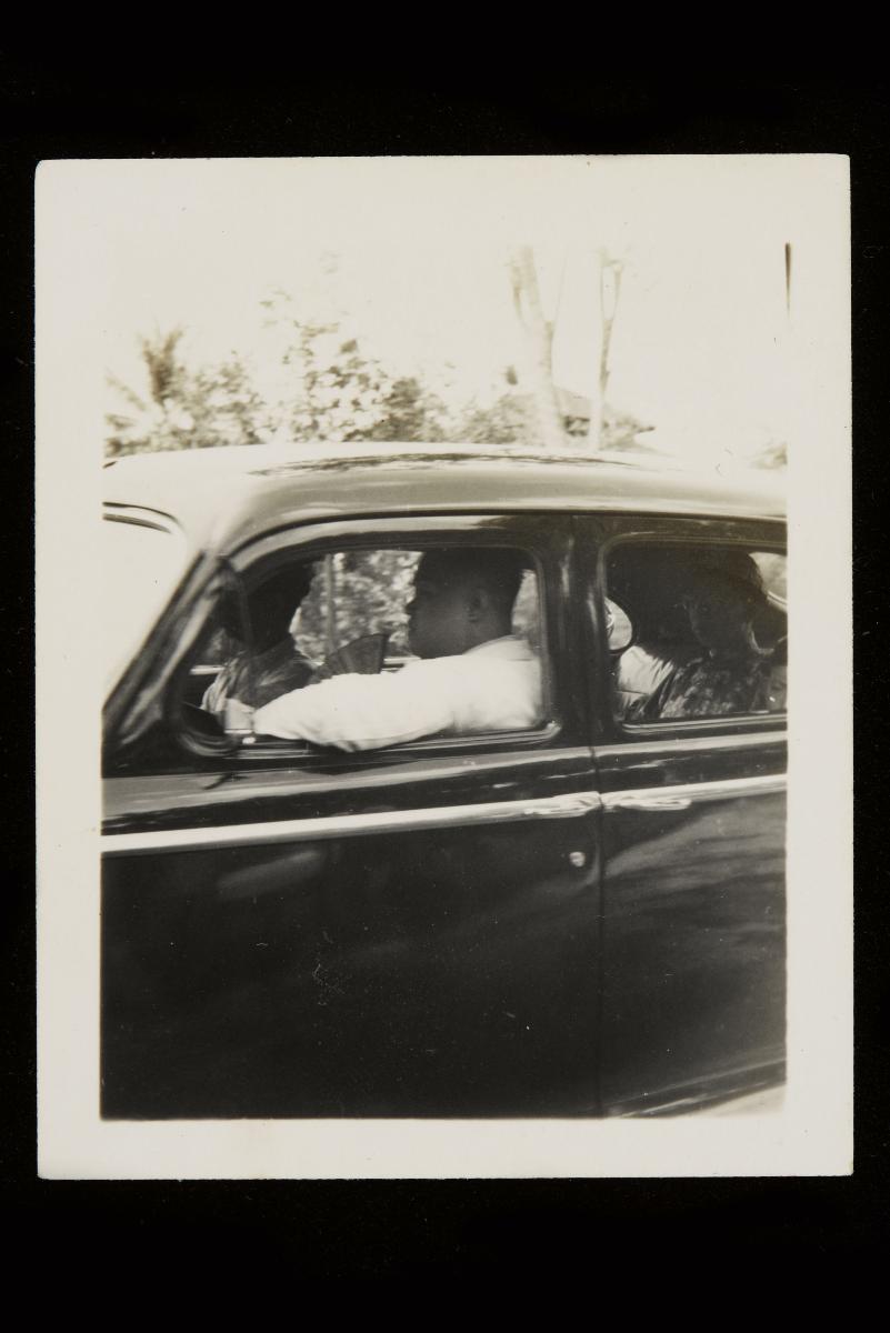 This photograph shows cars that are part of a Chinese Peranakan wedding procession. The bridegroom is in the front car.This photograph is part of a series of 74 photographs documenting a Peranakan wedding held in Penang in 1951. Peranakans commissioned photographs to document their families and important life events such as marriages and deaths. They also commissioned photographs to record their involvement in business enterprises, and in social causes such as schools and academic societies, religious groups, and in community and cultural associations. With improvements in camera technology, it became possible to take photographs without the assistance of a studio in the first decades of the 20th century.
