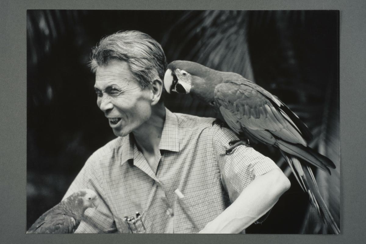 #2 of 3 - Wu Guanzhong observes parrots during an outdoor sketching session at the Singapore Bird Park, 1980s-1990s.吴冠中在新加坡鸟类公园写生鹦鹉时的情景。20世纪80-90年代,于新加坡。