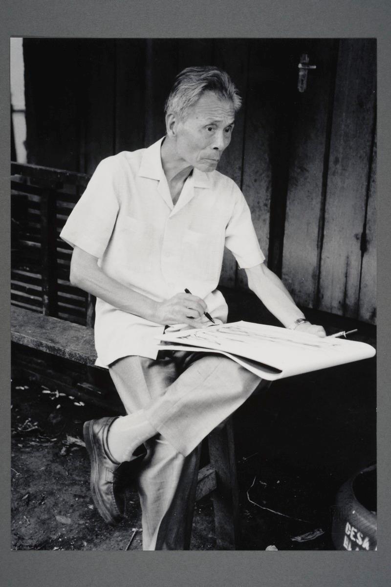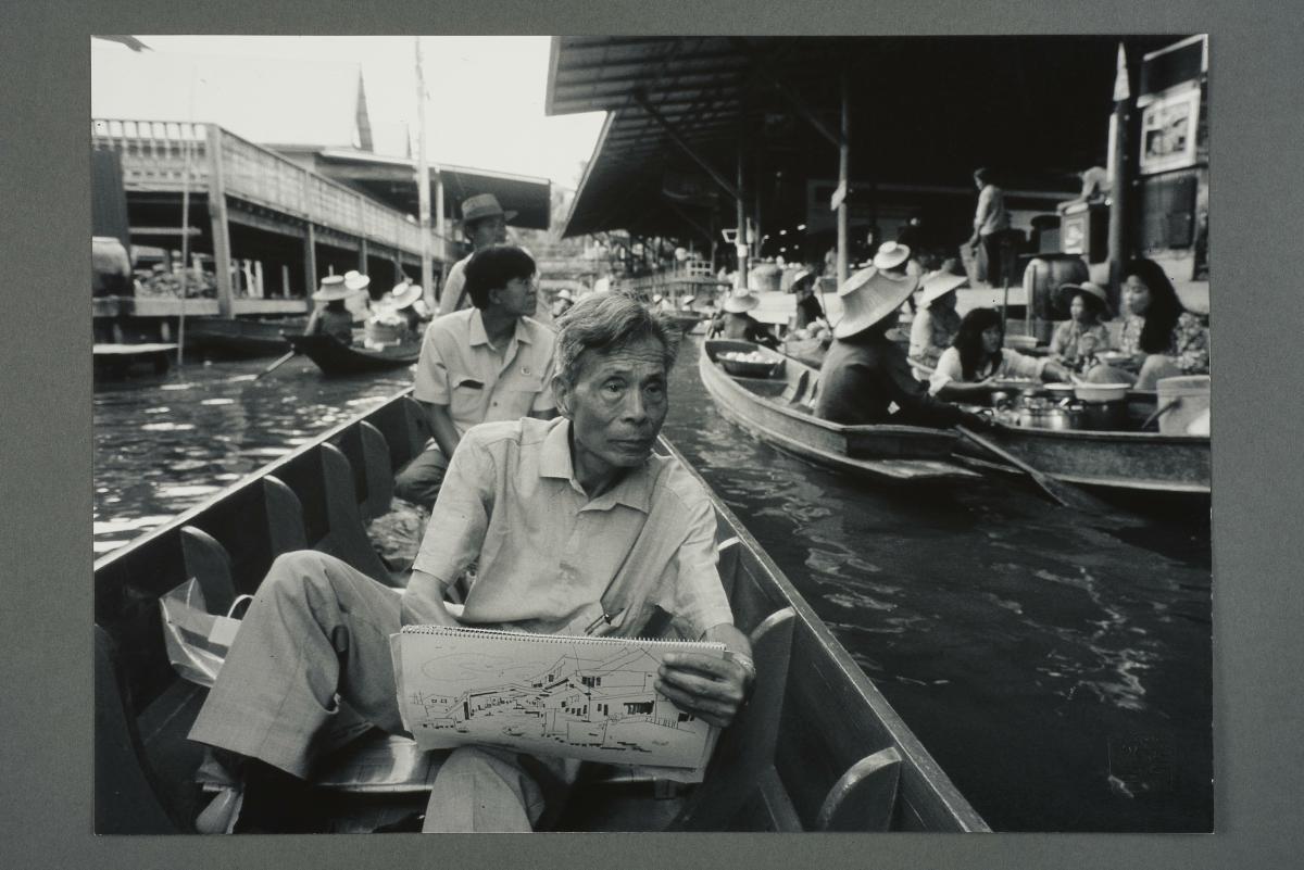 #3 of 3 - Wu Guanzhong drawing at a floating marketing in Thailand. 吴冠中在泰国的水上市场画画。
