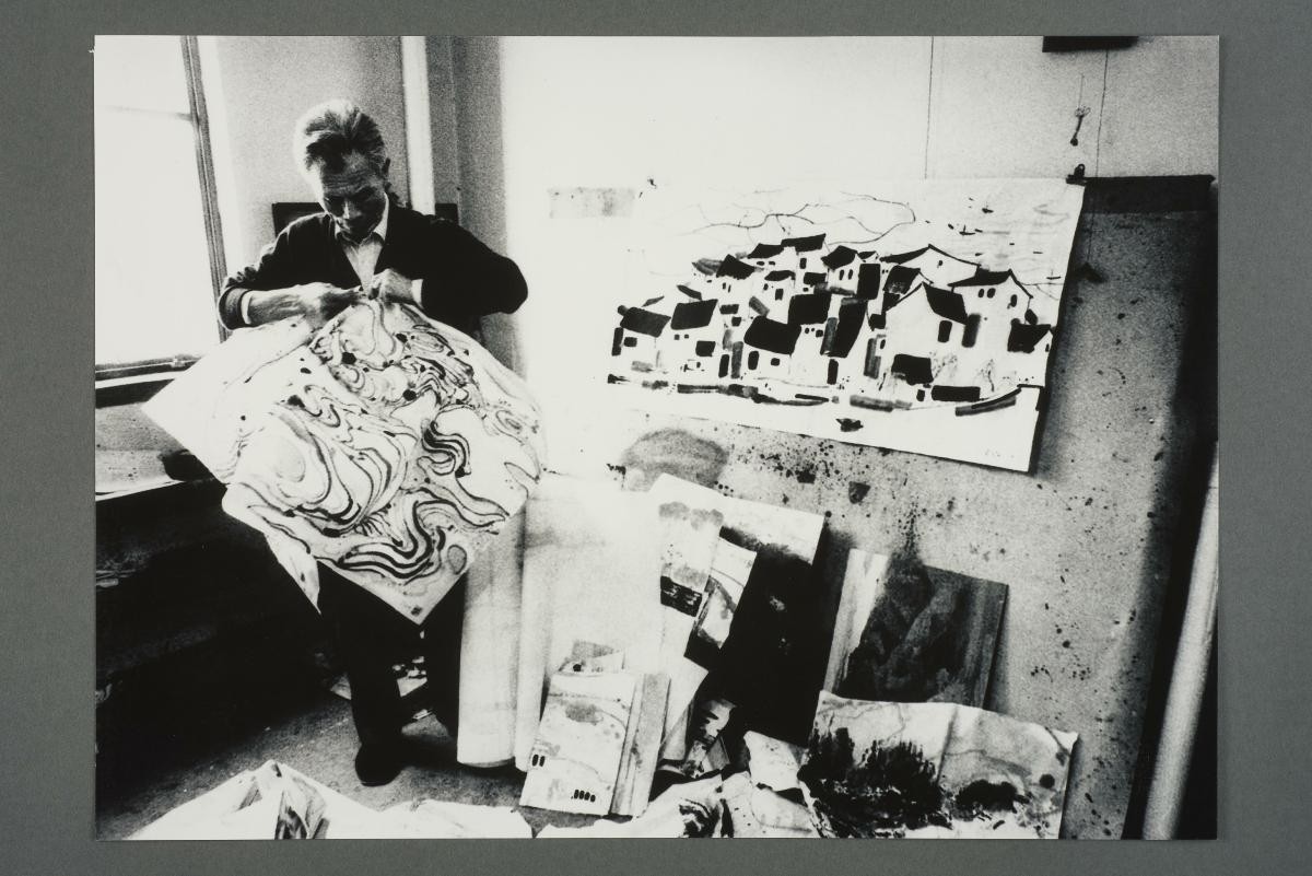#3 of 4 - Wu paints a female nude at a studio in Beijing. 吴冠中在北京工作室创作人体题材作品。