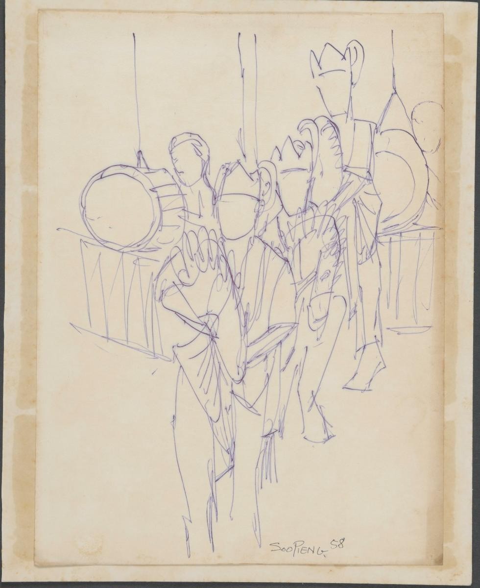 Shown here is the Buraq, a legendary four-legged creature with wings, who transported Prophet Muhammad on his miraculous journeys from Mecca to Jerusalem, and to the heavens - all in the span of one night. These journeys are known as the Isra' and Mi'raj. There is no set depiction of the Buraq or "kuda sembrani" as it is called by the Javanese. This depiction reflects the Javanese interpretation as a composite creature wearing an elaborate crown, claws for its front feet, and a peacock-like tail. This image of the Buraq is painted onto the reverse side of a piece of glass. To create the image, the artist painted details in the foreground before moving on to the background. This method, commonly referred to as "reverse glass painting", allows for the image to be viewed correctly from the other side of the glass.