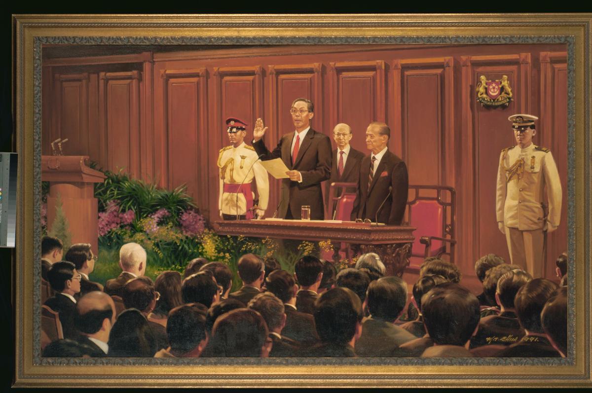 This photo, signed by President Nathan, was given to Mr Goh Chok Tong as a gift. The photo depicts then-SM Goh at his swearing-in ceremony as SM, having just stepped down as PM.