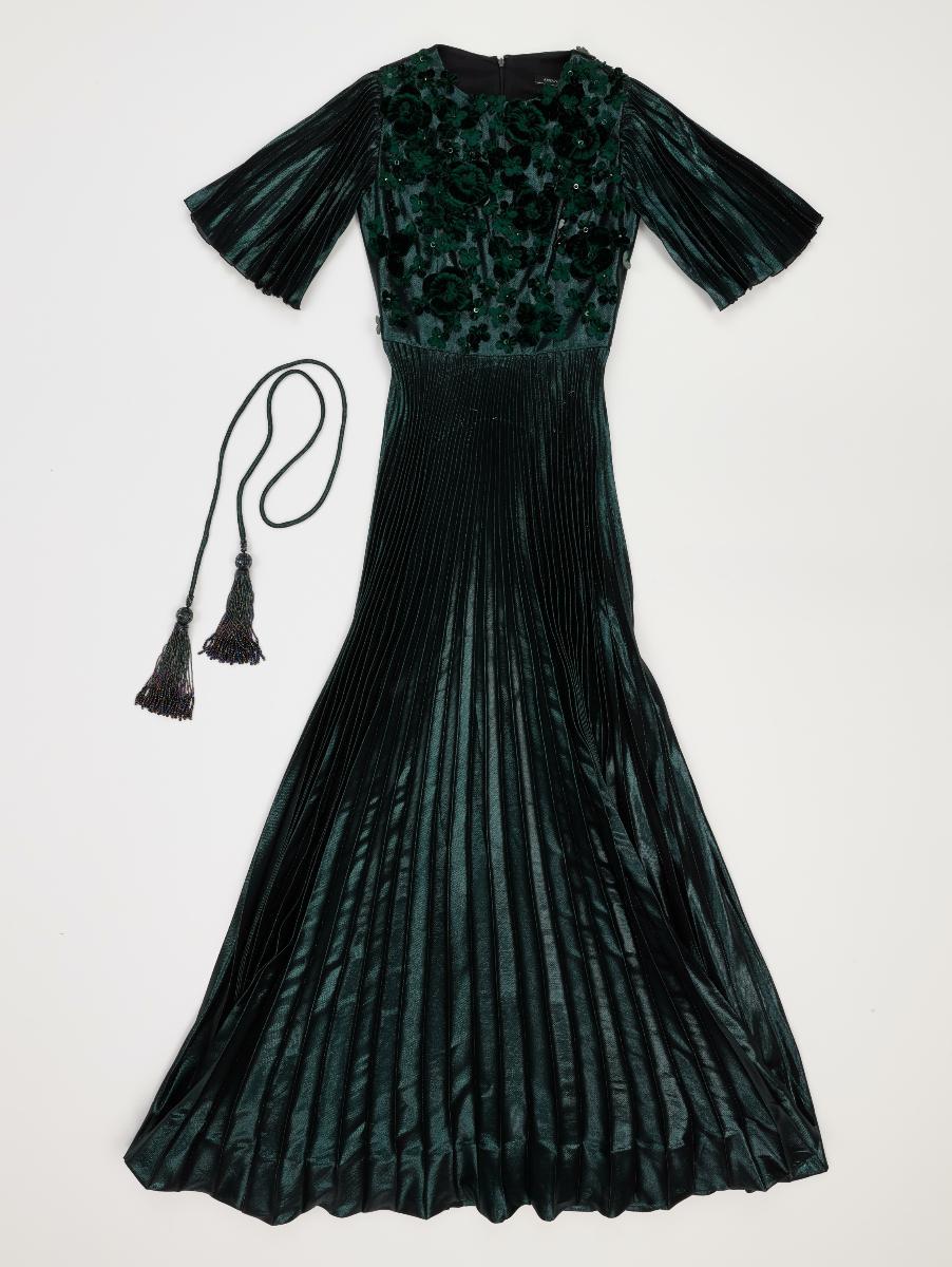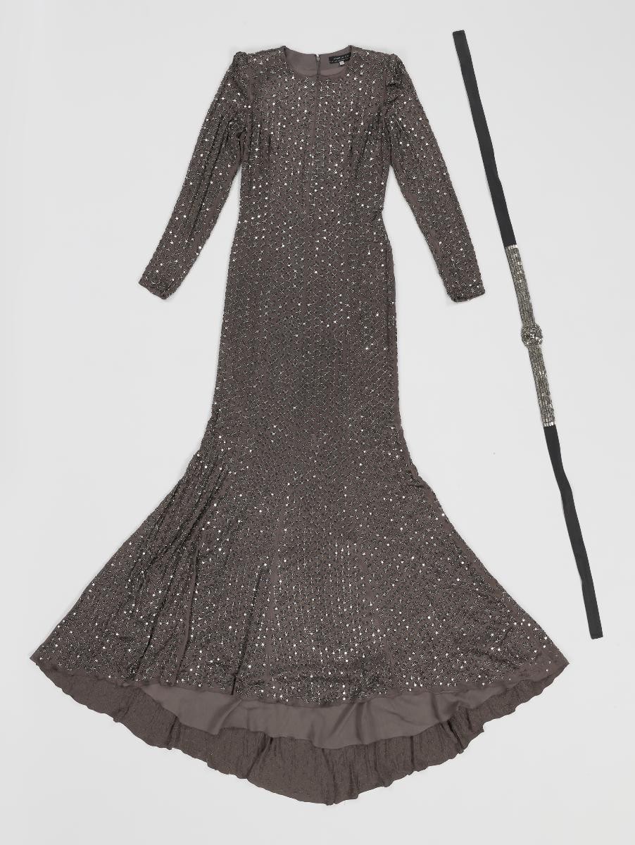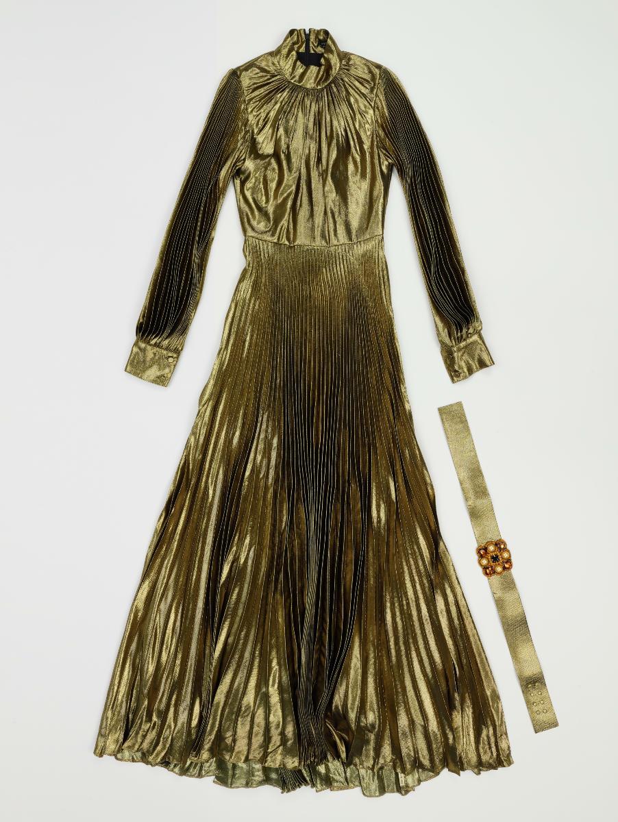 This black gown with dramatic draped sleeves is printed in contrasting shades of gold, umber and white that emulate that of Chinese lacquer screens. Also known as the Coromandel screens in the 19th century, they often depict Chinese figurative scenes and landscapes as with this gown. As a passionate collector of antiques and modern decorative arts, Andrew Gn is often inspired by art history in his fashion. Andrew Gn is one of Singapore’s most prolific fashion designers in history, achieving high levels of critical acclaim and industry success. He is the only Singaporean to be a constant feature of Paris Fashion Week since 1995. His creations are known for their elegant, feminine, maximalist aesthetics and are finely crafted, cross-cultural, and reflective of innovation in tradition in fashion. This work is part of his major gift back to Singapore.