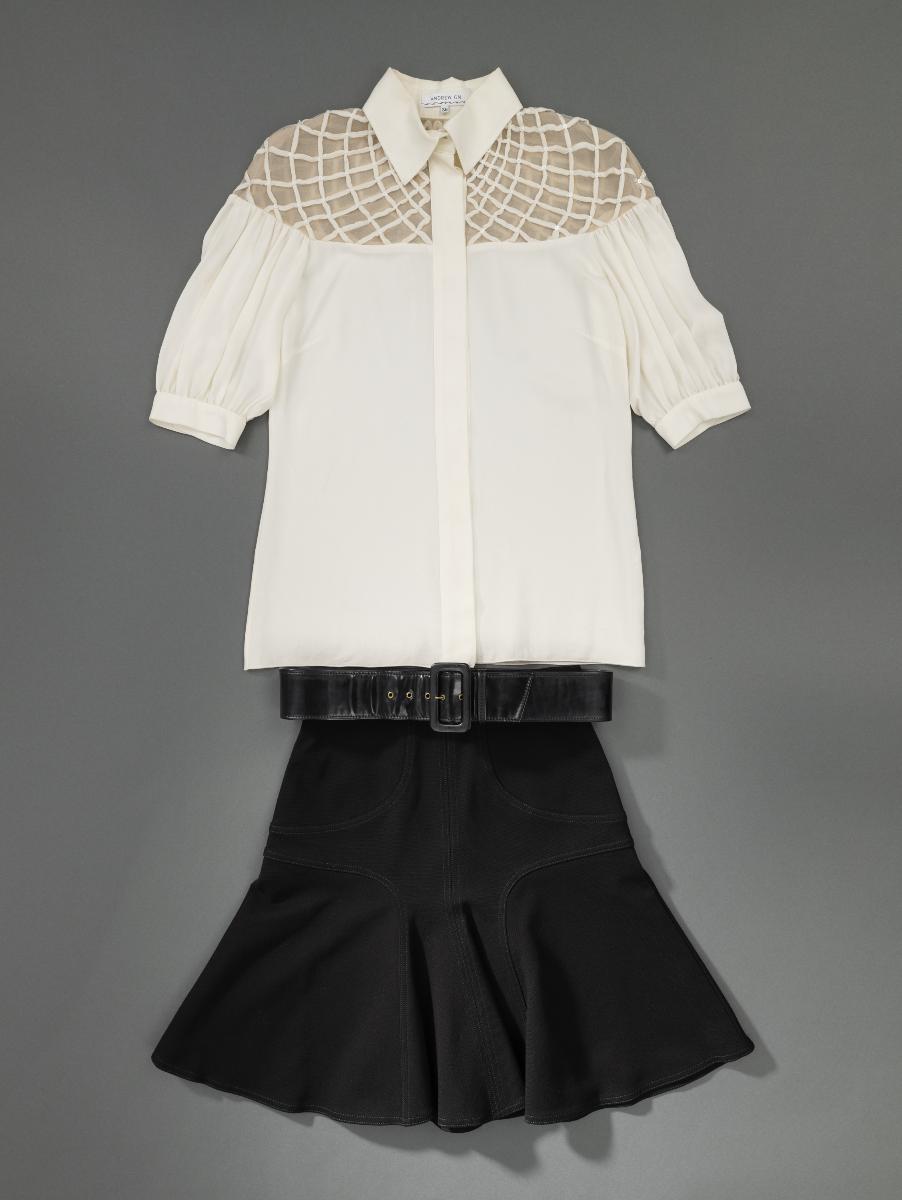 Matched with a pair of shorts and belt, the green blouse in silk georgette features appliqué motifs of doves and stars inspired by Georges Braque. As a passionate collector of antiques and modern decorative arts, Andrew Gn pays homage to few of his favourite Western modern and contemporary artists in this Spring/Summer 2014 collection. Andrew Gn is one of Singapore’s most prolific fashion designers in history, achieving high levels of critical acclaim and industry success. He is the only Singaporean to be a constant feature of Paris Fashion Week since 1995. His creations are known for their elegant, feminine, maximalist aesthetics and are finely crafted, cross-cultural, and reflective of innovation in tradition in fashion. This work is part of his major gift back to Singapore.